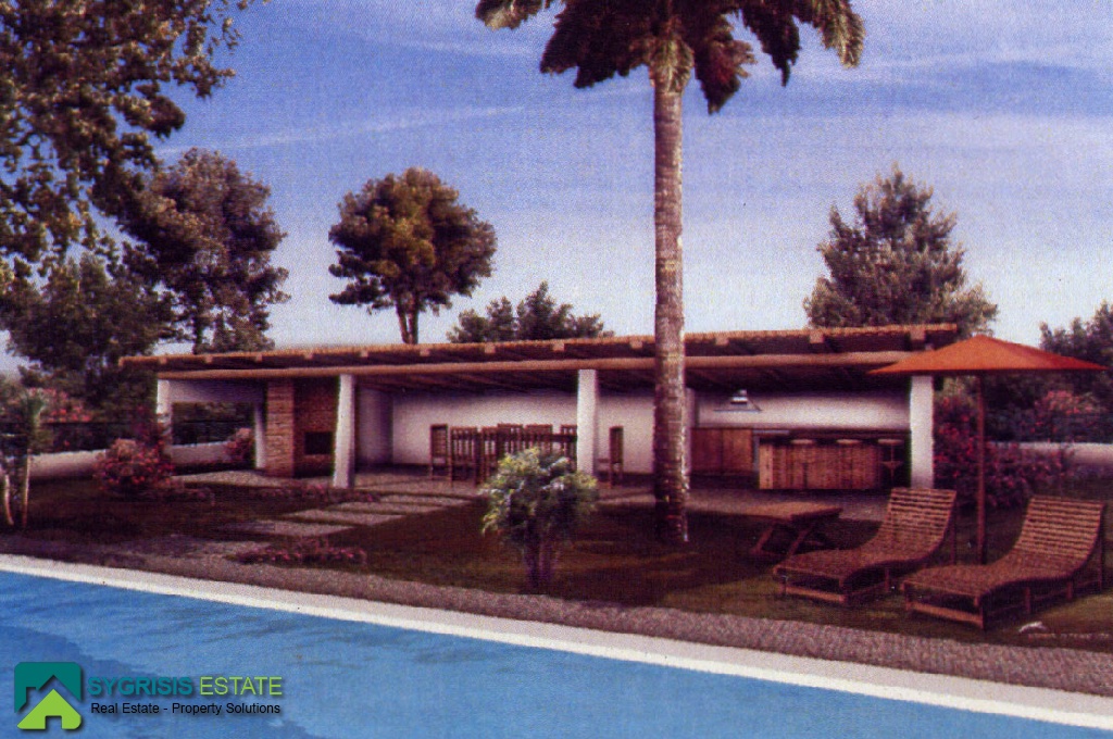 Σαλόνι – κουζίνα – 2 Υπνοδωμάτια – 1 Μπάνιο. Πισίνα 18μ χ 10μ , το Barbecue 100 τ.μ. και επίσης υπάρχει χώρος για γήπεδο τέννις ή μπάσκετ ή ελικοδρόμιο.