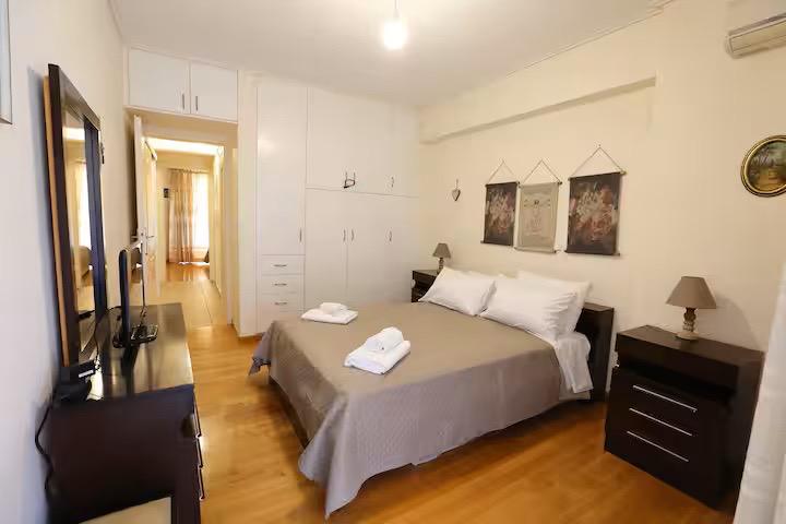 Μια ζεστή δευτερεύουσα κρεβατοκάμαρα περιλαμβάνει ημιδιπλό κρεβάτι, και και οι δύο προσφέρουν άφθονο αποθηκευτικό χώρο. Απολαύστε την άνεση μιας εντοιχισμένης κουζίνας με δύο ψυγεία και πλήρη εξοπλισμό, ιδανική για φιλοξενία μέσω Airbnb.