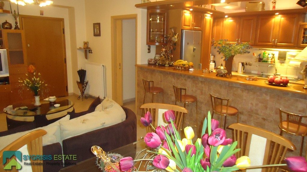 Διαθέτει 3 υ/δ, μπάνιο, wc, ενιαία κουζίνα-σαλόνι, μεγάλη κουζίνα με πάσο, πόρτα ασφαλείας, δάπεδα από πλακάκι, 4 air condition, ηλιακός, αυτόνομη θέρμανση πετρελαίου, βεράντες, ηλεκτρικές τέντες προς-πίσω. Πλησίον μετρό.
