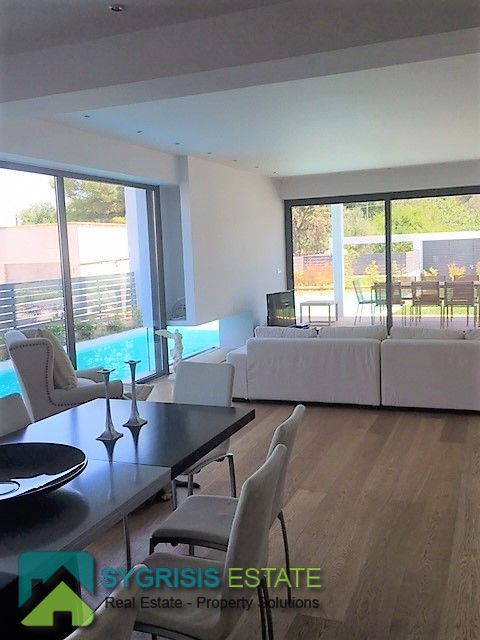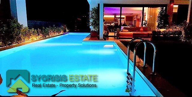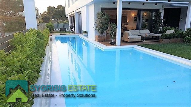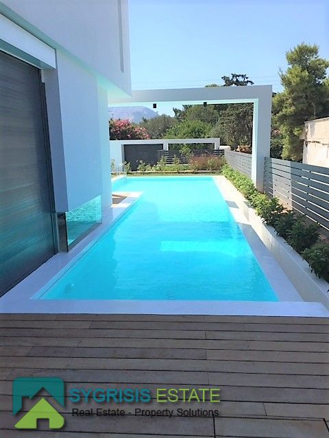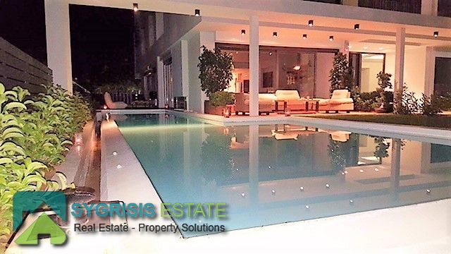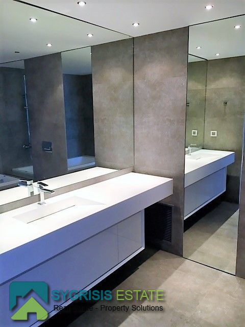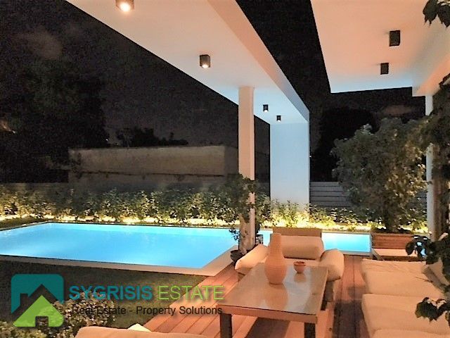 ELLINIKO Kato, Μaisonette 440 sq.m. , basement – ground floor – 1st floor, frontage and ual aspect 5 bedrooms master, construction 2015, 6 bathrooms, 2 wc, kitchen, dining room, autonomous heating, natural gas, , Solar, underground parking, storage, garden 400 sq.m, swimming pool, energy class A +, with internal elevator, large private heated heated inflow pool, storage and 4 parking spaces in the basement, on the ground floor are the reception areas, the kitchen Either single, reception areas, as well as guest wc, On the 1st floor there are 3 large master bedrooms (each with its own bathroom), the basement consists of 1 master master bedroom, 1 master room for use by guests with own bathroom (guest house), 1 third room with kitchenette and bathroom , 1 large bathroom with sauna / hot tub, a seating area or playroom for children, gym, wc and a laundry room, the basement has an outdoor garden for natural lighting and ventilation and connects to the pool area Outside with stairway.