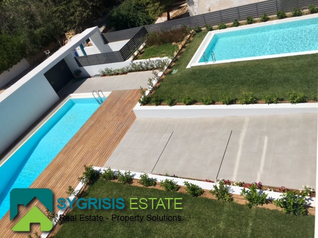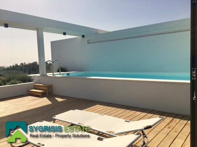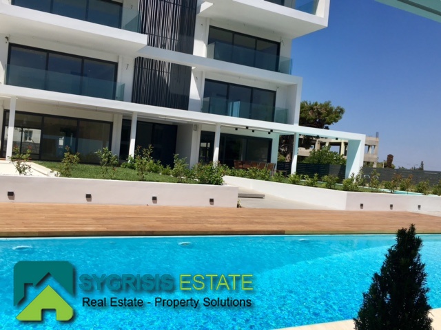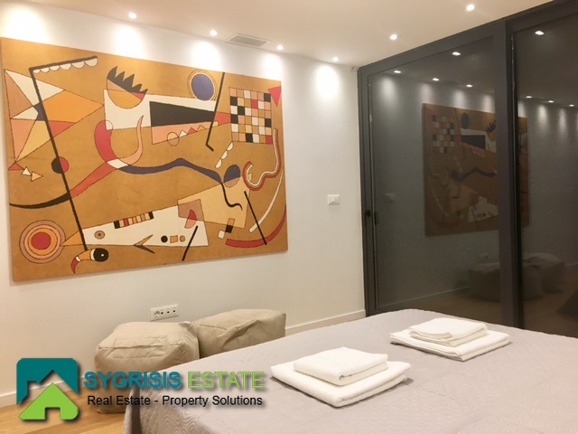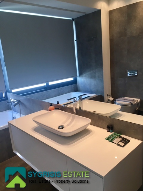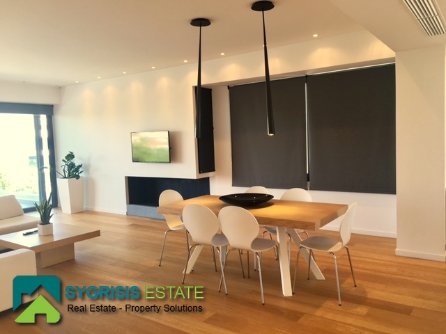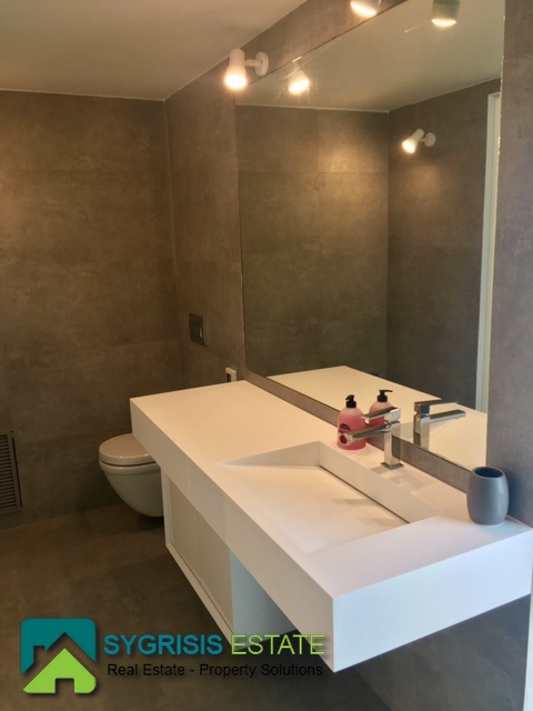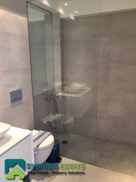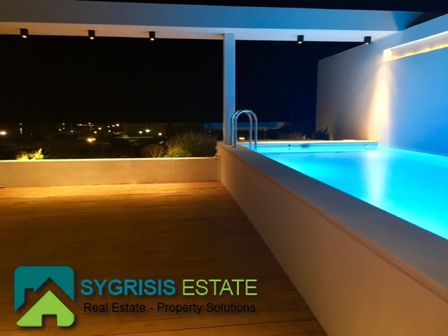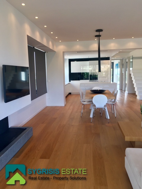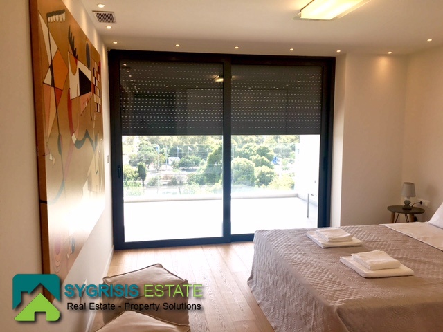 ATHENS Hellinikon , newly constructed maisonette 215 m², third and fourth floor,frontage and dual aspect, 4 bedrooms (2 master), construction 2015, 3 bathrooms, 1 wc, furnished, living room, dining kitchen, heating, gas, Air conditioning, security door, mountain – sea view, underground parking, storage, garden, swimming pool, energy class A +, large terraces, oak floors throughout the house, energy efficient aluminum window frames with double glazing and shutters, Fan coil Autonomous Underfloor heating, with elevator and sea view, 3 parking spaces in the basement, large storage room and independent room with bath service and kitchen in the basement, outdoors on the 4th floor there is a heated swimming pool with sea view and large planted flower space, security alarm system, video intercom.