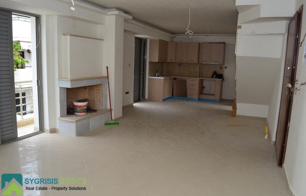 Νεόδμητη Μεζονέτα 140 τ.μ. κατασκευής 2009, 5ου και 6ου ορόφου, 5ος όροφος, 2 υ/δ ,1 μπάνιο, ενιαία κουζίνα – σαλόνι, τζάκι, πόρτα ασφαλείας, διπλά τζάμια, κουφώματα αλουμινίου, ηλιακός θερμοσίφωνας τριπλής ενέργειας, αυτόνομη θέρμανση πετρελαίου, δάπεδα πλακάκι – ξύλο, εσωτερική σκάλα, 6ος όροφος 2 υ/δ, 1 μπάνιο, Μεγάλες βεράντες , ταράτσα ιδιόκτητη, θέα, Πάρκινγκ.