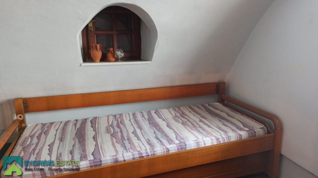 SANTORINI FIRA Neoclassical building. It was built in 1993. Three different entrances on two levels. On the ground floor is a house of 70 sq.m. with marble floor, insulation and wooden closets, 2 bedrooms, living room, kitchen, bathroom and with yard 90 sq.m. On the ground floor there is also 15 sq.m. studio with its own entrance. On the first floor there is an entrance to a house of 85 sq.m. with 15 sq.m. terrace, 2 large rooms, 2 attics, living room with handmade fireplace with marble and kitchen with wooden frames. The house has insulation and autonomous heating. It has a solar water heater, marble stairs. It is located in the center of Fira, very close to museums.