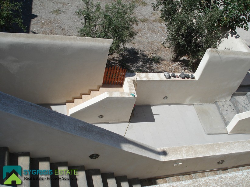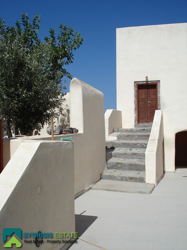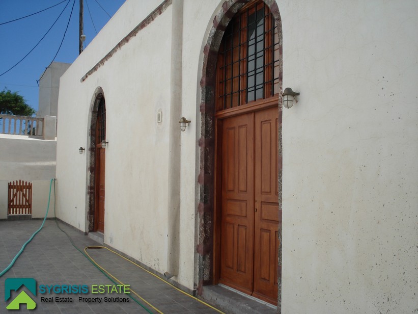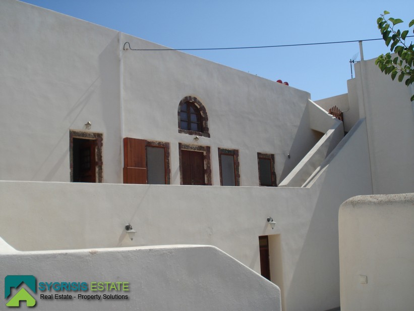 Το ακίνητο είναι στον Πύργο Σαντορίνης. Το οικόπεδο είναι 950 τ.μ και το οίκημα 417 τ.μ. Είναι παραδοσιακό οίκημα και είναι σαν συγκρότημα κατοικιών. Είναι 4 αυτοτελείς κατοικίες. Η μία διαθέτει ένα υπνοδωμάτιο, κουζίνα και μπάνιο. Η δεύτερη έχει δύο υπνοδωμάτια, μία κουζίνα και δύο μπάνια. Οι άλλες δύο ήταν μία κάναβα που έχει γίνει δύο ξεχωριστές κατοικίες. Οι χώροι είναι διαμορφωμένοι αλλά είναι άδειοι. Υπάρχει η δυνατότητα για δύο υπνοδωμάτια, δύο μπάνια και σαλόνι-κουζίνα. Επιπλέον, υπάρχουν δύο αποθήκες που είχαν χρησιμοποιηθεί σαν υπνοδωμάτια παλαιότερα με εξωτερική τουαλέτα και λουτρό. Τέλος, υπάρχει η δυνατότητα να χτιστεί άλλος ένας όροφος καθώς το σπίτι είχε γκρεμιστεί από τον σεισμό του 1956. Ενδιαφέρομαι για επαγγελματική μίσθωση.