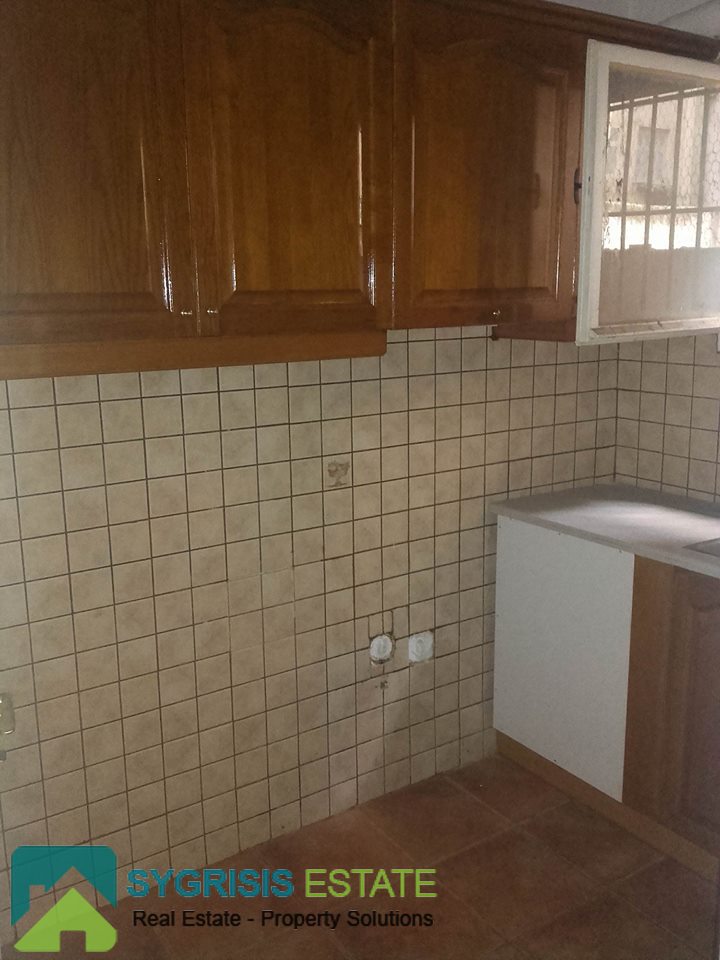 AGIOS PANTELEIMONAS, Plateia Attikis, apartment 99 sq.m., built 1970, renovated 2015, ground floor, facade, bright, 2 bedrooms, bathroom, hall, living room, kitchen, central gas heating, security door, wooden frames windows and doors, oak flooring in living room and bedrooms, renovated kitchen and bathroom (unused), electric wardrobe changed, large built-in wardrobes in the bedrooms, ergonomic cupboards in the kitchen and double stainless steel sink, possibility of third bedroom eye or office layout, next to a supermarket, market, schools and transportation, freshly painted.