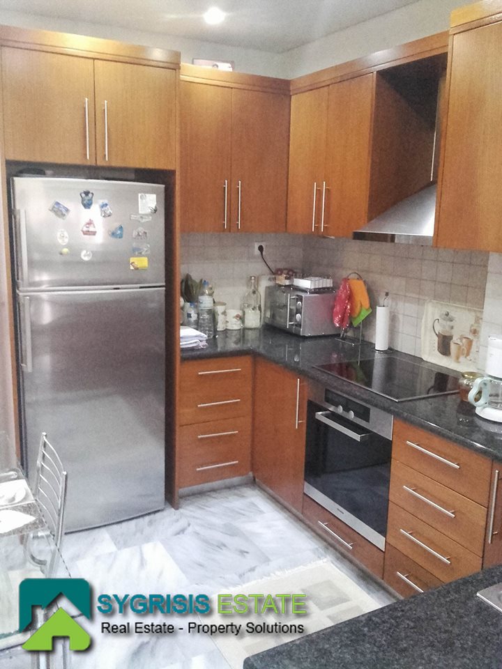 GYZI apartment 91 sqm, built in 2003, fully renovated in 2013, 2 bedrooms, 1 bathroom, 1 wc, living and dining area, big kitchen, autonomous heating with natural gas, 3 air conditioners, security door, entrance intercom camera, underground parking, energy saving aluminum window frames double glazing and shutters, in the kitchen granite countertops and oak ergonomic cabinets, built-in electrical appliances INOX MIELE (ceramic kitchen cooker hood and electric oven, dishwasher, refrigerator), Stainless Steel Double Bowl Sink, large wardrobes in the bedrooms, Ioannina marble floors in a living room – kitchen and balconies, and oak in the bedrooms, large balconies with electric awnings, solar water heater ready to install, close to public transportation, supermarkets and schools, objective value of the property: 99. 600 euro, ENFIA:205 euro.