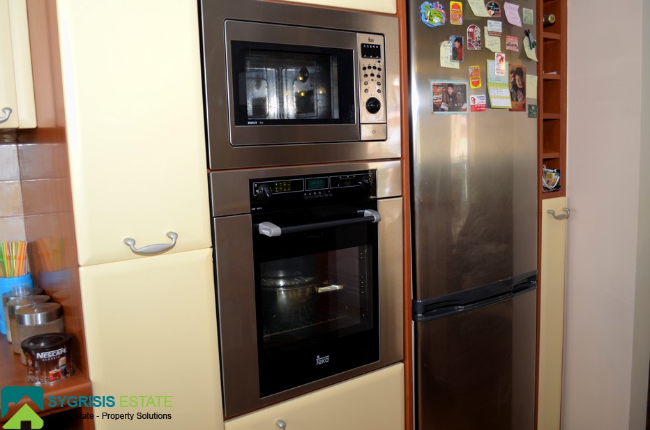 ATHENS GLYFADA, Ano Glyfada, Apartment, 116 sq.m, 3rd floor, construction 2000, Renovation 2013 , it is a frontage and dual aspect apartment, bright, excellent layout, 3 bedrooms, open plan kitchen with living room, 1 bathroom, 1 wc, security door, camera entrance intercom, alarm security system, autonomous heating with heating oil, 4 air conditioners, fireplace with marble – granite lining, solar water heating system, energy efficient aluminum window frames double glazed with shutters, laminate floors, ergonomic cabinets in the kitchen and a double stainless steel sink, built-in electrical INOX appliances,(dishwasher, electric oven, ceramic hobs, microwave oven, fridge freezer), large wardrobes in the bedrooms, awnings in the balconies durable in strong air, surrounding with 3 balconies, storage room 15 sq.m in the basement, covered garage, near schools, super markets, public market and public transportation, 4.7km from Glyfada Sandy Beach and from the centre of the luxurious Glyfada, “The Beverly Hills” of Athens, this fashion-conscious suburb is known in Greece for its malls, stylish bars, up market cafes, well-known restaurants, boutiques and cosmopolitan summer clubs.