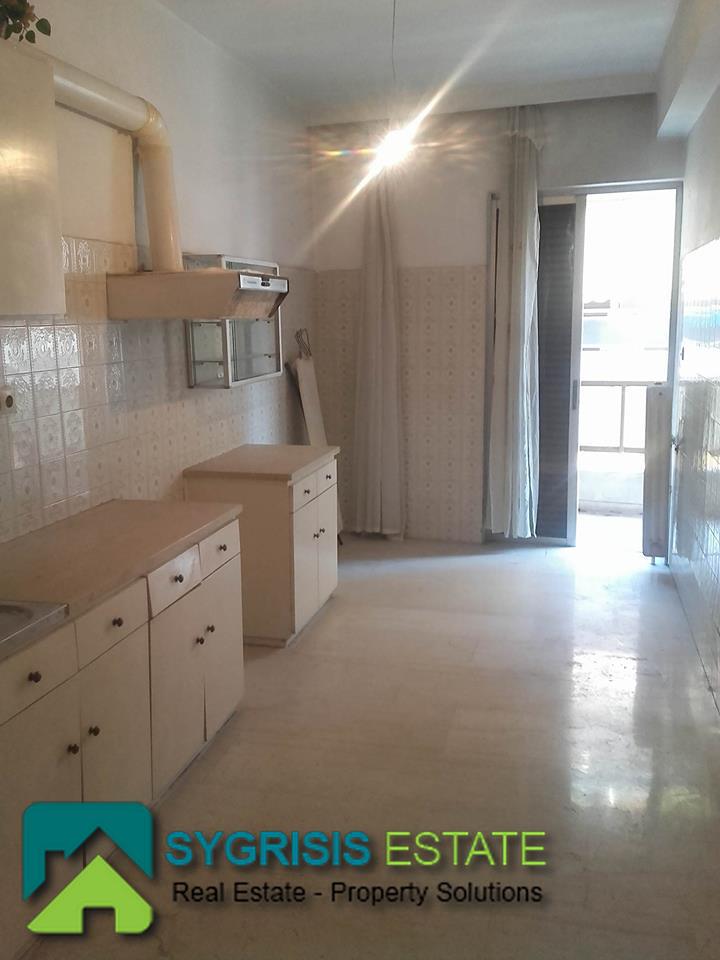 KALLITHEA Agia Eleousa, apartment 70 sq.m., built in 1980, needs renovation, 2nd floor, frontage and dual aspect apartment, 1 bedroom, bathroom, hallway, living room, kitchen, central heating, big balcony with 3 exits and awnings, eastern orientated, sliding aluminum window frames with shutters, oak and marble floors, large kitchen with ergonomic cupboards, large wardrobes in the bedroom, close to restaurants, cafes, supermarkets, schools, public market, and public transportation.