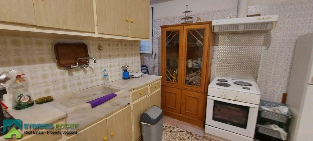 ATHENS KALLITHEA, Apartment of 46 sq.m., good condition, elevated ground floor, dual aspect, interior, bright, very good layout, 1 bedroom, 1 bathroom, entrance hall, living room, kitchen, air-condition, central heating with heating oil, electric water heater, hardwood flooring in the bedroom, mosaic flooring in rooms, wooden windows and doors frames, built-in wardrobe in the bedroom, many cabinets in the kitchen with marble sink, large bathroom with shower, small balcony in the living room, easy access to all facilities, near schools, supermarket, pharmacies, bakeries, banks, cafes, restaurants, commercial stores, and public transportation.