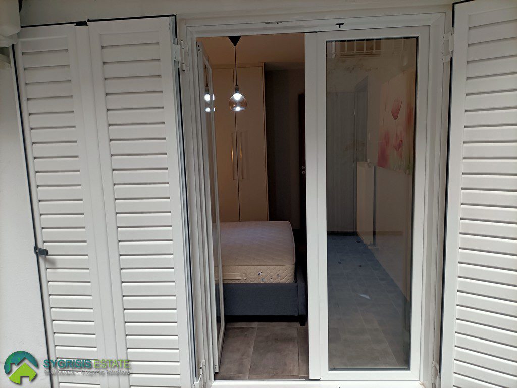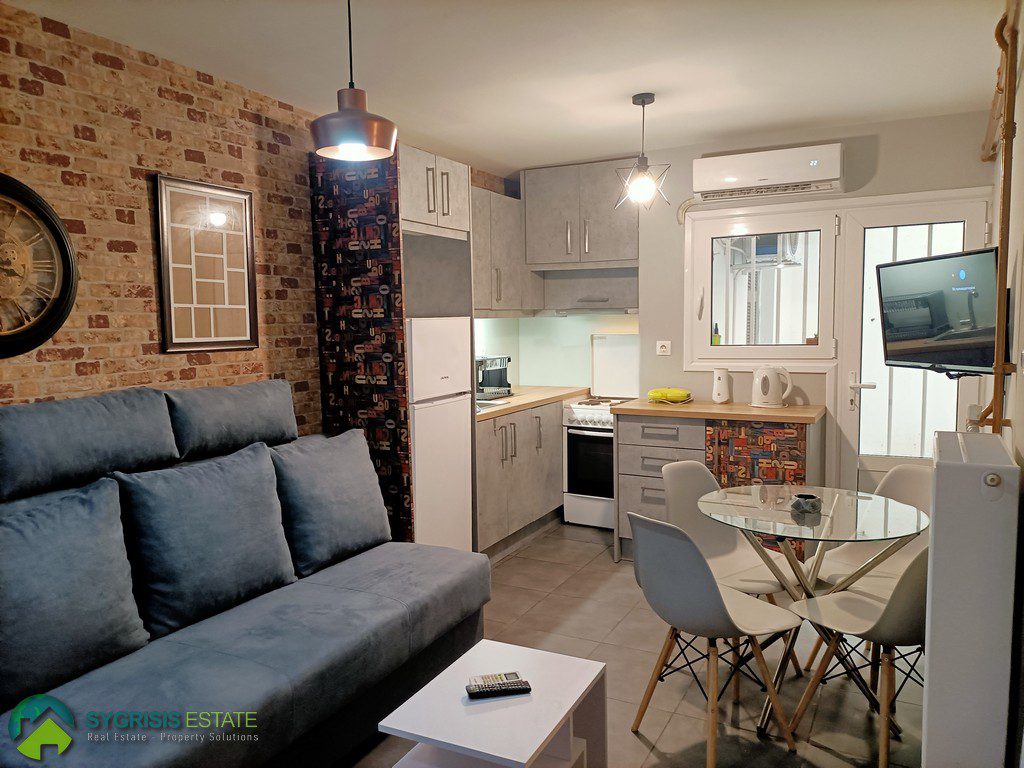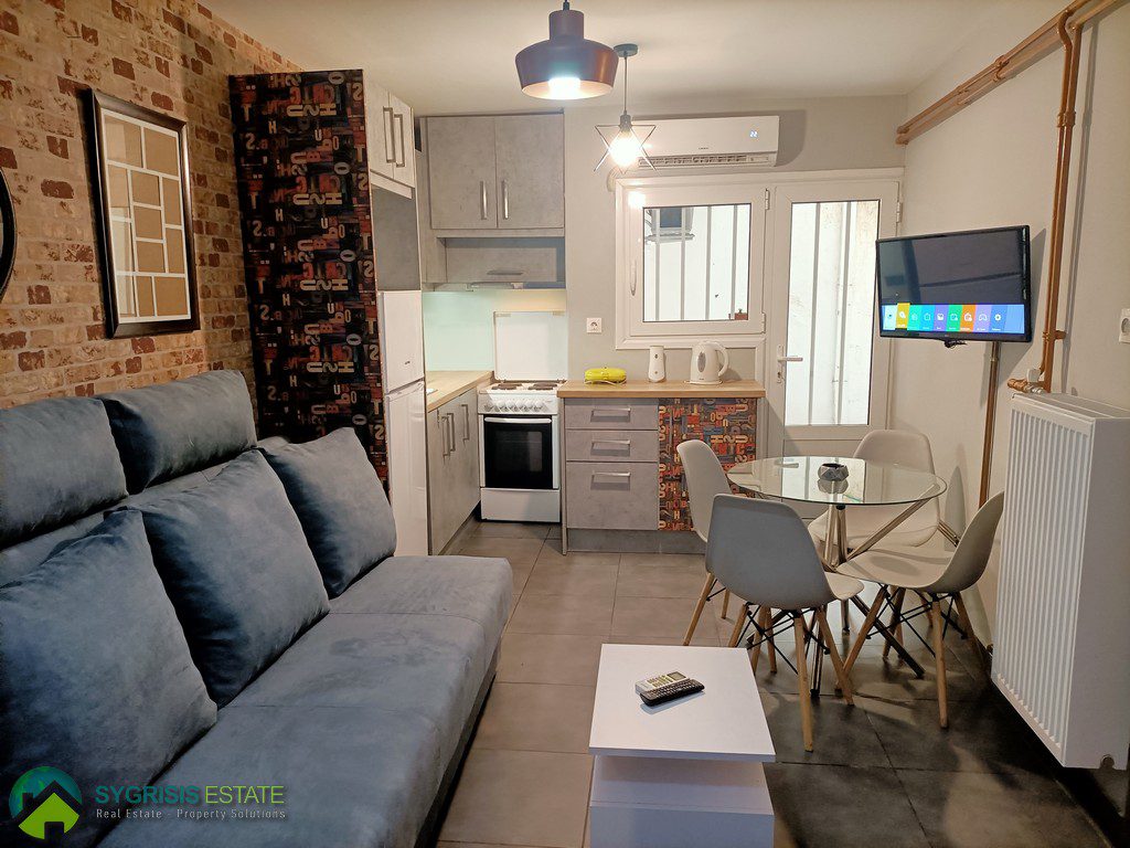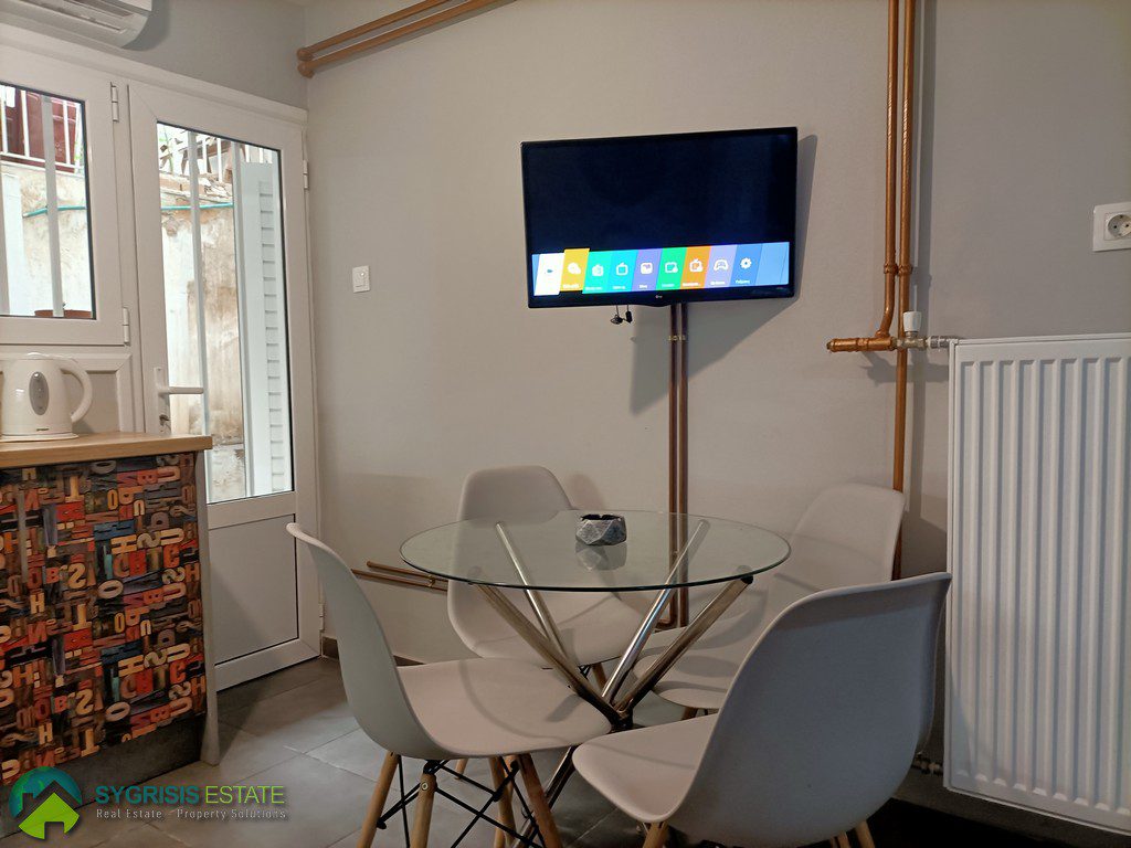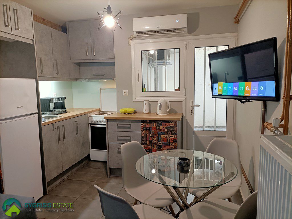 ATHENS ANO KYPSELI, Apartment of 45 sq.m., fully renovated in 2019, basement, it is an interior apartment, bright, excellent layout, 1 bedroom, bathroom, open plan kitchen with the living room, air conditioning, security door, fully furnished and equipped, upgraded electrical and plumbing systems, new electrical power panel, outlets, and switches, wood like ceramic tiles flooring, energy-efficient aluminum window frames with double glazing, and shutters, ergonomic cabinets in the kitchen with stainless steel sink, new built-in wardrobe in the bedroom, large bathroom with walk-in shower cabin, it has a backyard with exclusive use, the property is located in the center of Athens, close to the cosmopolitan Fokionos Negri pedestrian street, in a quiet neighborhood.