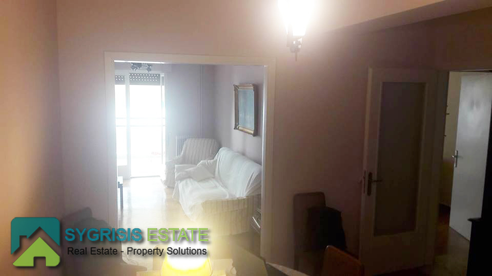 NEA SMYRNI CENTER, apartment 95 sq.m., 1980 construction, 5th floor, frontage dual aspect and corner apartment, 2 bedrooms, 1 bathroom,1 wc, hallway, living room, kitchen, awnings, unlimited view, good condition, is given and fully Furnished – equipped at 550 Euro, with kitchen, refrigerator, washing machine, no heating radiators, heating with hotplates, low communal, close to the market, supermarkets and schools, next to public transport and tram stop.