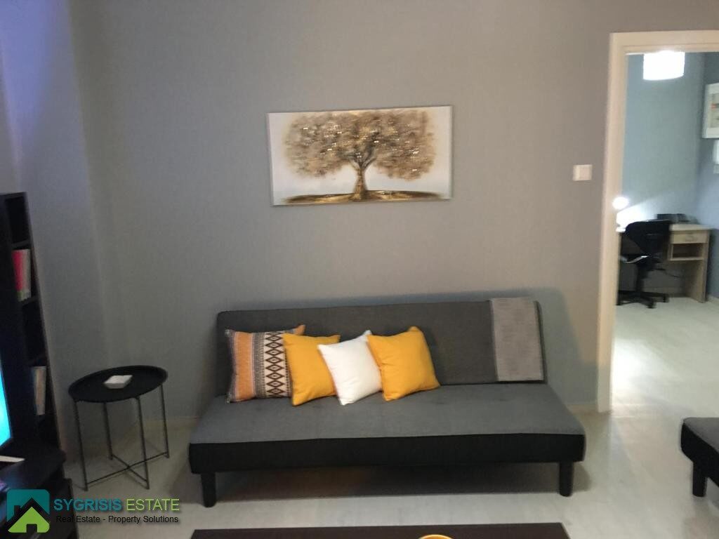 In the Pagrati area of Athens, an apartment of 50 sq.m. near the Panathinaiko Stadium, fully furnished and equipped. It has a hall, living room, kitchen, bathroom, 1 bedroom, oil central heating, air conditioning, security door, energy-saving aluminum frames with double glazing and shutters, ergonomic cabinets in the kitchen with stainless steel sink, fully equipped kitchen microwave, kettle, toaster, fitted wardrobes in the bedroom, and utility closet in the hallway, comfortable bathroom with walk-in shower, 2 SMART LED TVs, one in the living room and one in the bedroom.