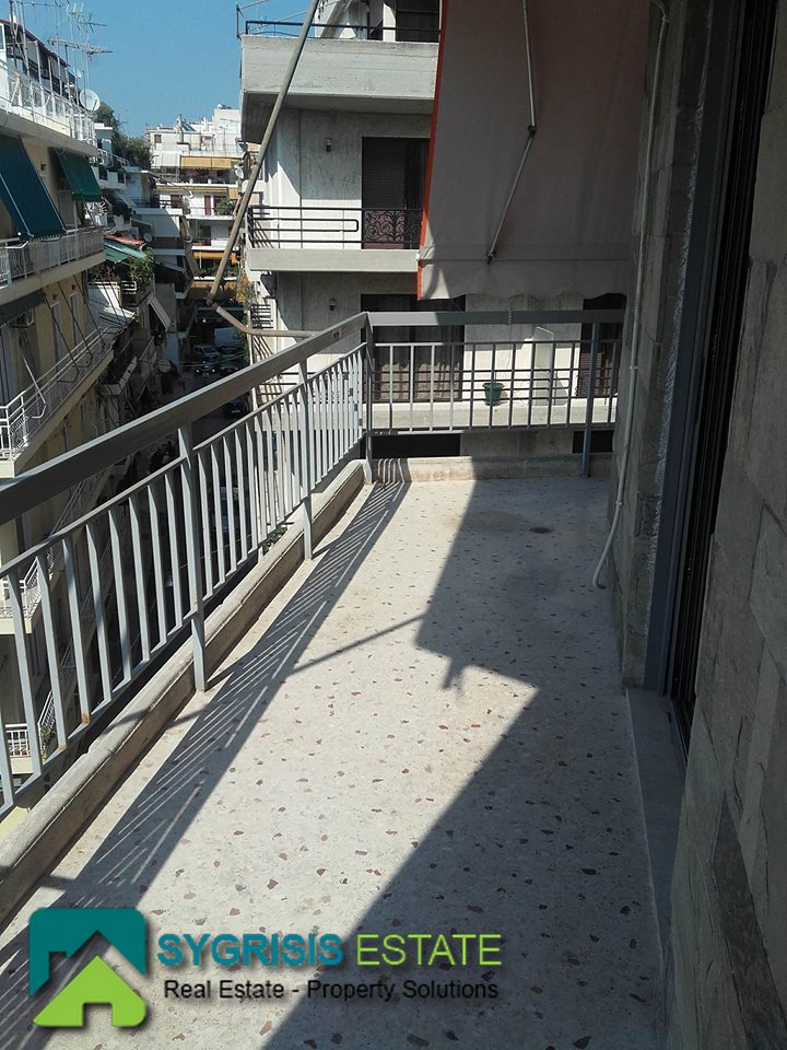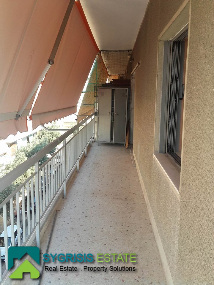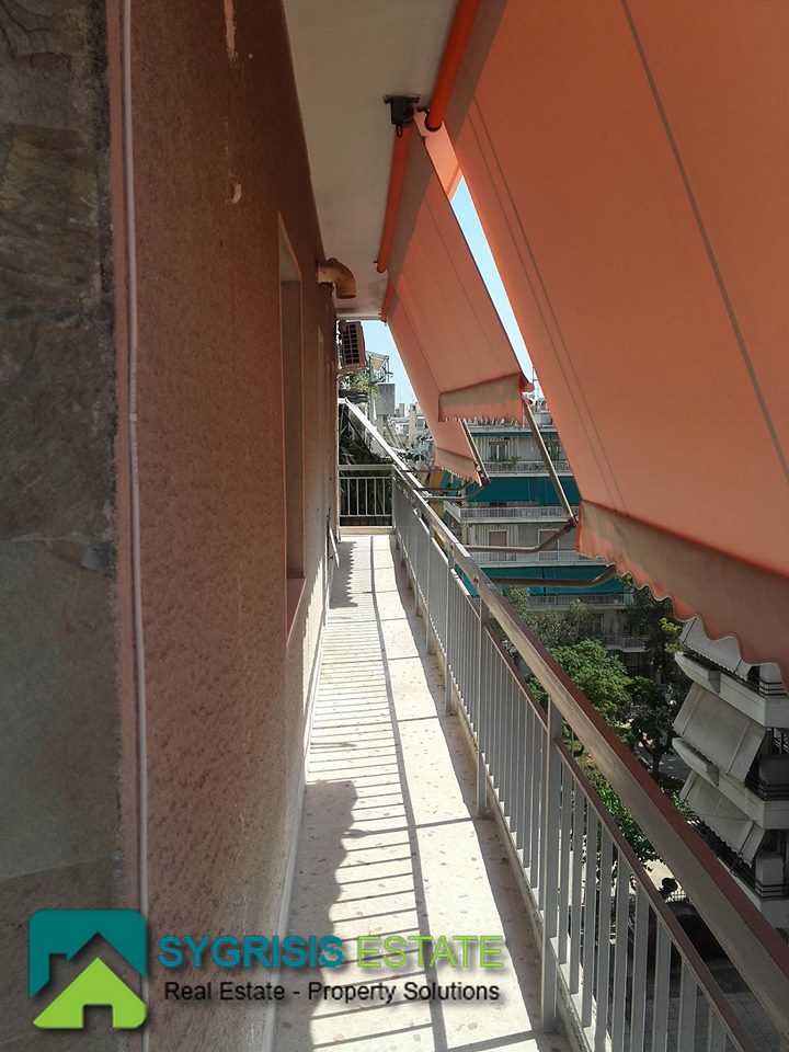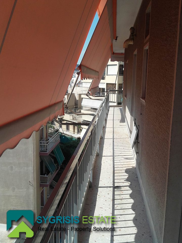 PAGRATI apartment 75 sm, 5th floor, frontage – dual aspect and corner apartment, 2 bedrooms, built in 1980, 1 bathroom, hall entrance room, living room, kitchen, central heating, airconditioning, security door, excellent condition, fully renovated kitchen, Aluminum double Glazing window frames with screens and shutters, new heating panels, verandas 35 sq.m. with new awnings, oak and mosaic floors, central entrance with security door, freshly painted, partial view of the Acropolis, close to schools, public transportation and supermarket