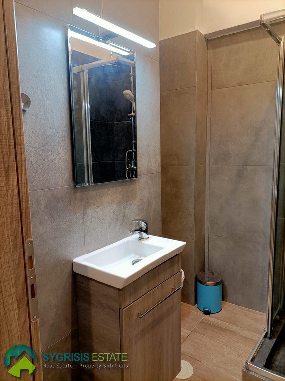 ATHENS PAGRATI, Apartment of 45 sq.m., constructed in 1970, fully renovated in 2020, elevated ground floor, frontage, bright, excellent layout, 1 bedroom, 1 bathroom, entrance hall with open plan kitchen, living room, no heating system, air condition, security door, ceramic tiles flooring, energy-efficient aluminum window frames with double glazing, screens, and roller shutters, ergonomic cabinets in the kitchen with stainless steel sink, built-in wardrobe in the bedroom, bathroom with walk-in shower cabin, near supermarkets, pharmacies, bakeries, coffee shops, restaurants, and public transportation, there is no provision for washing machine