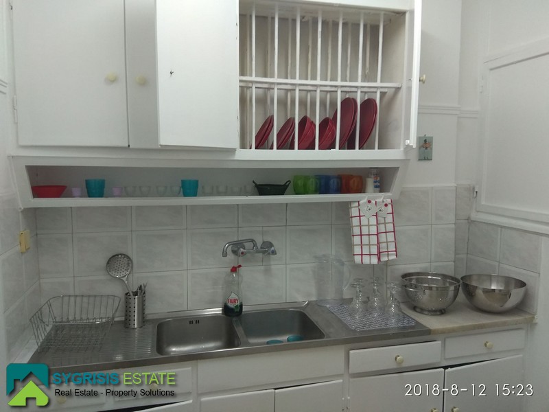 ATHENS PAGRATI, Pagrati Center, Apartment 75 sq.m., built in 1968, renovated in 2018, 1st floor, it is a frontage and dual aspect apartment, bright, very good layout, 2 bedrooms, bathroom, living room, kitchen, entrance hall, corridor, central heating with heating oil, air conditioning, fully furnished and equipped, marble and oak flooring in living room and bedrooms, wooden window and door frames with roller shutters, large kitchen with many cabinets and double stainless steel sink, large built-in wardrobes in the bedrooms, in a quiet neighborhood, close to Pagrati Central Square (Sintrivani), near to supermarkets, commercial stores, pharmacies, banks, coffee shops, restaurants, schools and public transportion, the apartment is listed in Booking.com and Airbnb platforms and operates succesful as a short term rental licensed accommodation with Short-term lease registration number: 00000257985 .