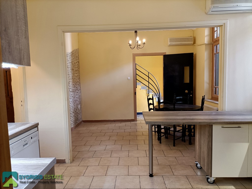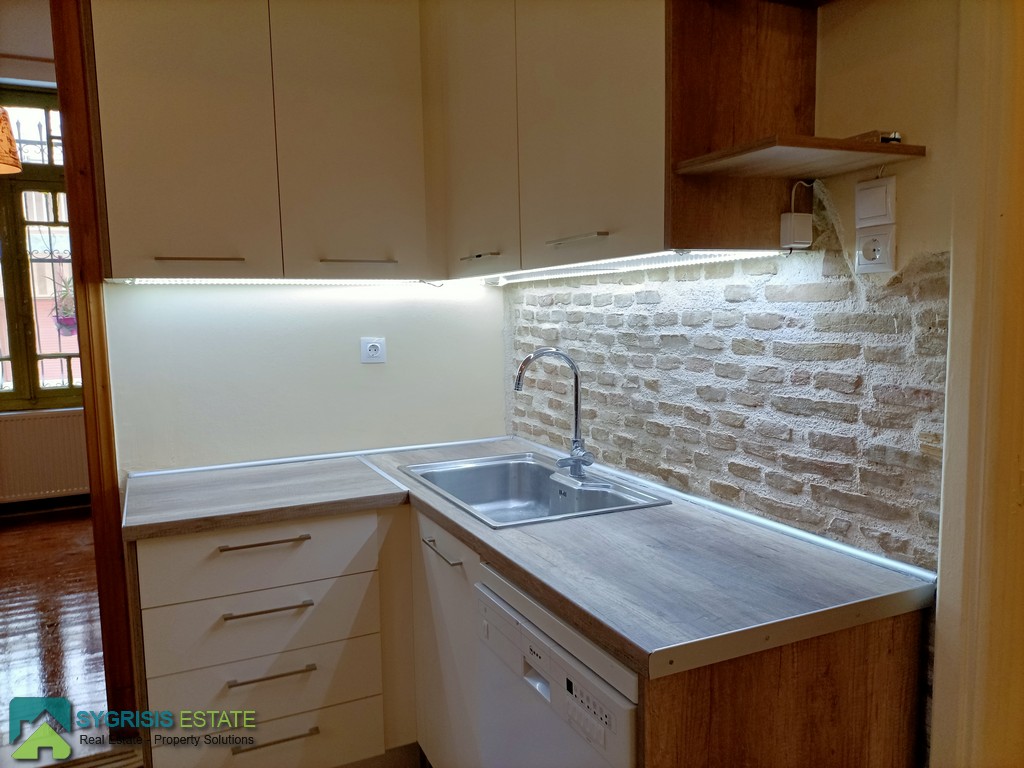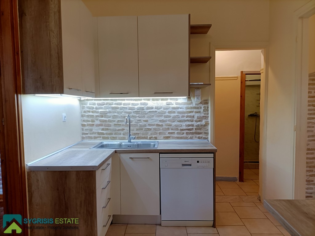 ATHENS Pagrati, Varnava Square, Floor-Through Apartment of 80 sq.m., constructed on 1980, renovated on 2021, elevated ground floor, it is a frontage and dual aspect apartment, bright, excellent layout, 2 bedrooms, bathroom, open plan kitchen with the living room, autonomous heating with natural gas, air conditioning, solar water heater, wooden window frames with shutters, new tiles flooring in the living room, kitchen, corridor, bathroom, and second bedroom, wooden flooring in the first bedroom, renovated kitchen with new cabinets, double stainless steel sink fully equipped with refrigerator, gas stove, electric oven, dishwasher, dryer, wardrobes in the bedrooms, walk-in shower cabin in the bathroom, located 100 meters from the lively Varnava Square, 15 minutes walking distance from Aghios Ioannis Metro Station, close to cafes, restaurants, schools, supermarkets, pharmacies, banks, bakeries, and public transportation, ideal for students.