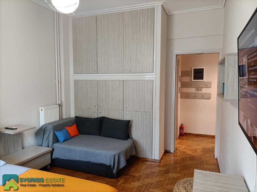 ATHENS PAGRATI, Alsos Pagratiou (Park), Studio Apartment of 35 sq.m., fully renovated in 2017, 1st floor, it is a frontage apartment, bright, excellent layout, fully furnished and equipped, 1 bedroom, 1 bathroom, hallway, kitchen, central heating with natural gas, air-condition, security door, wooden flooring in the entrance hall and in the bedroom, new tiles flooring in the kitchen and bathroom, energy-efficient aluminum window frames, with double glazing and roller shutters, the apartment has a double bed, a two-seater sofa bed, a laptop stand, washing machine, ceramic stove, 40-inch SMART TV, filter coffee maker, toaster, electric kettle, steam iron, hairdryer, smoke detector, fire extinguisher, and free wireless internet access, the balcony overlooks the Pagrati Park, located in a unique spot 10-minute walk from Panathenaic Stadium and just 15-minute walk from the metro station Evangelismos, near to all amenities. Available from October 1st until May 2023.