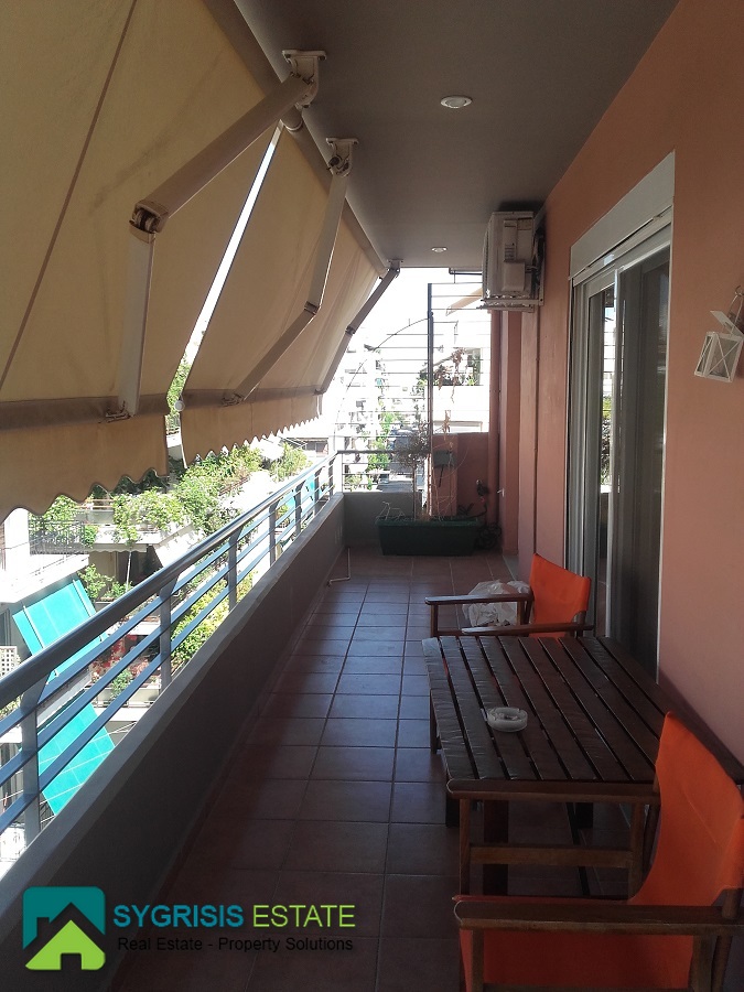 PAGRATI Profitis Ilias, newly built apartment of 84 sq.m., built in 2006, 4th floor, frontage and dual aspect apartment, 2 bedrooms, 1 bathroom, 1 wc, fully furnished, aluminum window frames double glazed, oak floors, Built-in Appliances in the kitchen area that use natural gas, open plan kitchen, water heater and autonomous Heating with natural gas, air conditioning in all areas, fireplace, security door, big veranda, awnings, unlimited sea view, open ground-floor covered parking space , storage room at the basement 6 sq.m, private terrace of 10 sq.m, close to schools, public market, supermarket, near public transportation.