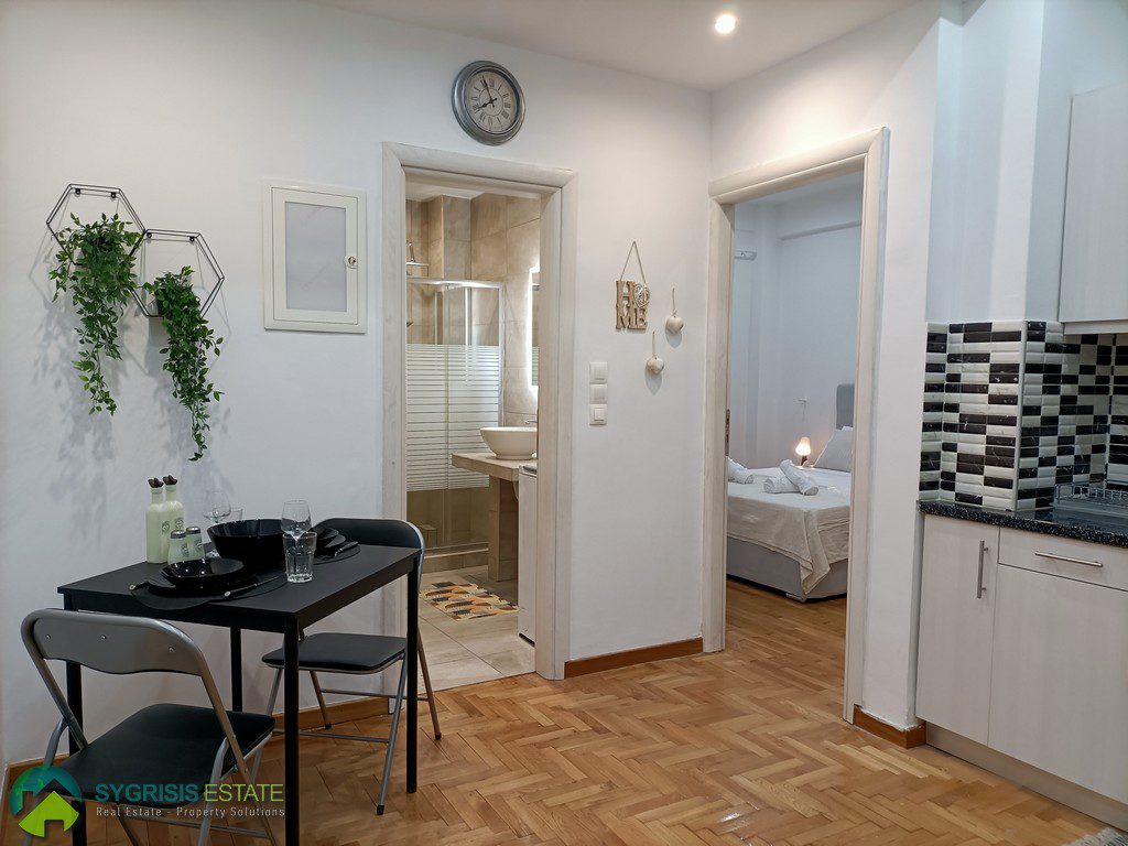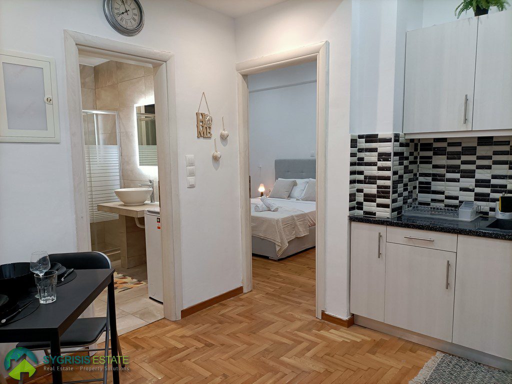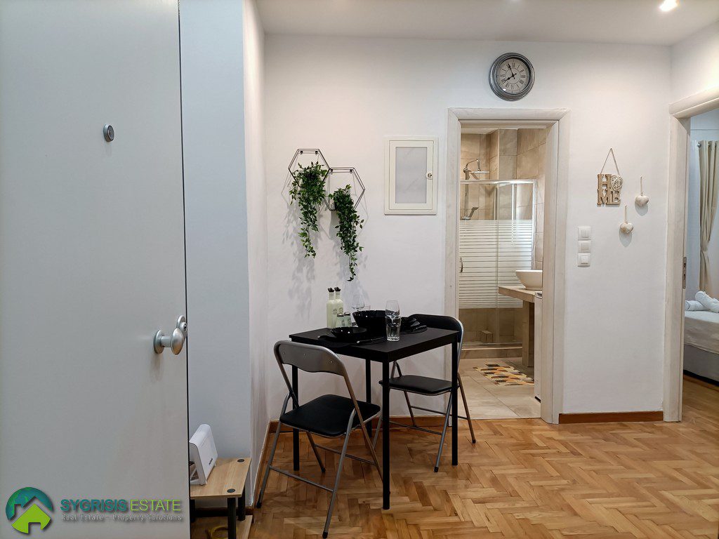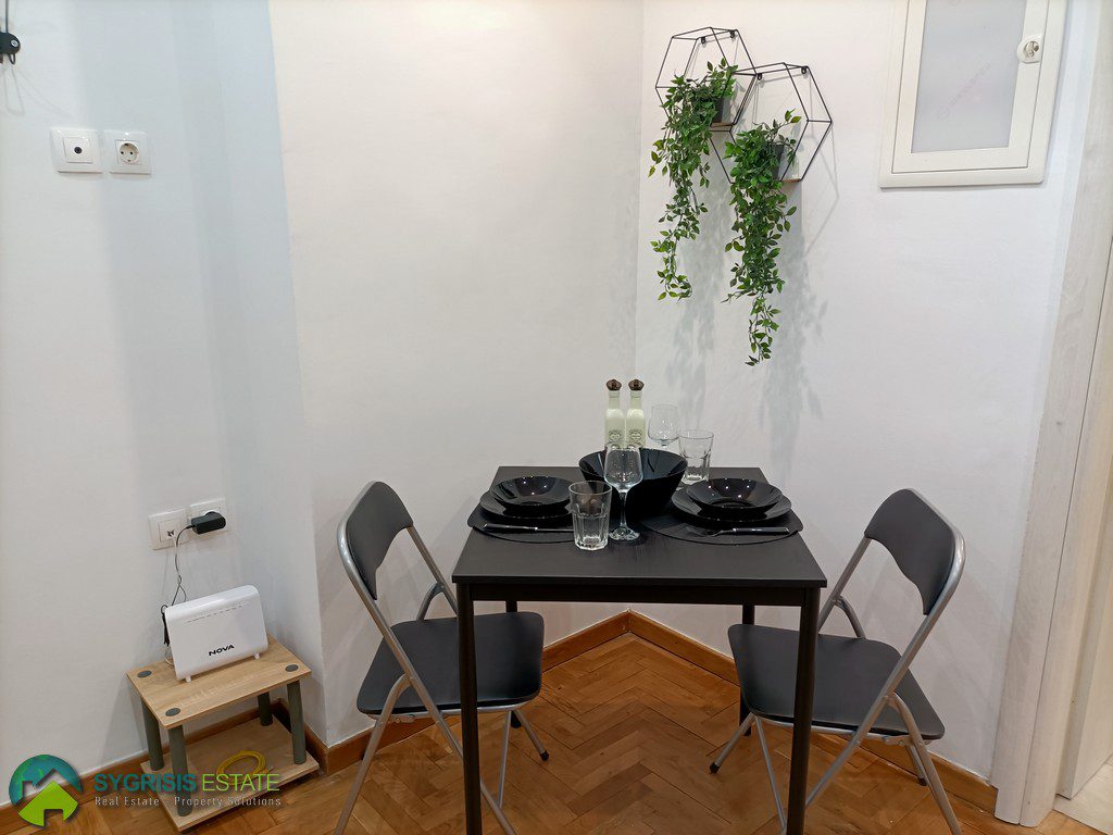 ATHENS VICTORIA SQUARE, Apartment of 40 sq.m., constructed 1970, fully renovated in 2022, 2nd floor, fully furnished and equipped, it is a frontage apartment, bright, excellent layout, 1 bedroom, bathroom, kitchen with dining area, balcony covered with new awnings and access to it from the bedroom, no heating system, air conditioning, security door, wooden flooring in the area of the kitchen and bedroom, tiles flooring in bathroom, energy-efficient aluminum window frames with double glazed windows, screens, and electric roller shutters, new ergonomic kitchen cabinets with synthetic sink and built-in electric appliances (electric range cooker with ceramic hobs and oven, fridge-freezer and cooker hood), 2 wardrobes in the bedroom, large bathroom with walk-in shower cabin and washing machine, new electrical and plumbing systems, new electrical power panel, outlets and switches, 250 meters from Victoria Metro Station, 350 meters from the University of Economics, easy access to everything, supermarkets, pharmacies bakeries, banks, coffee shops, restaurants, commercial stores, and public transportation ideal for students.