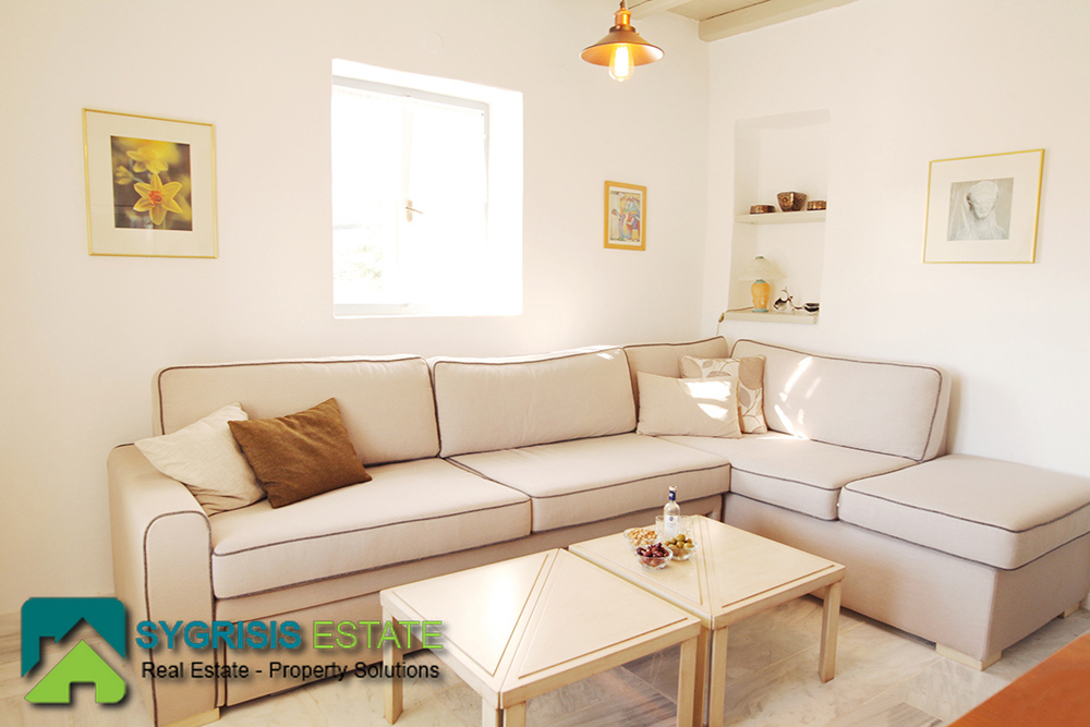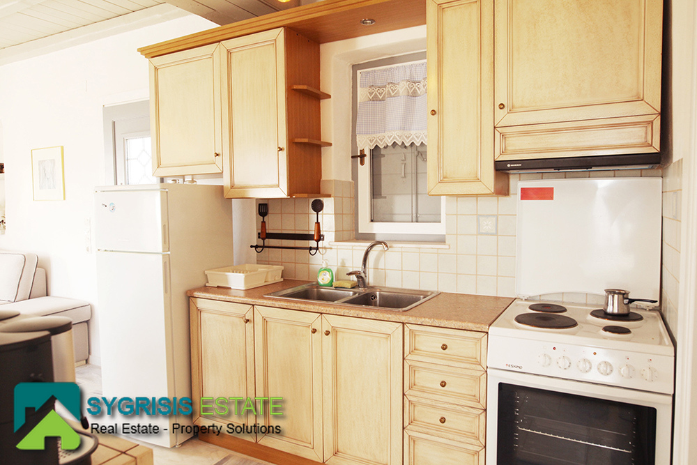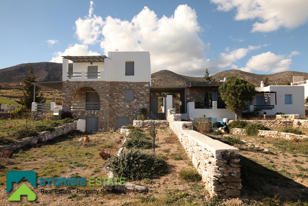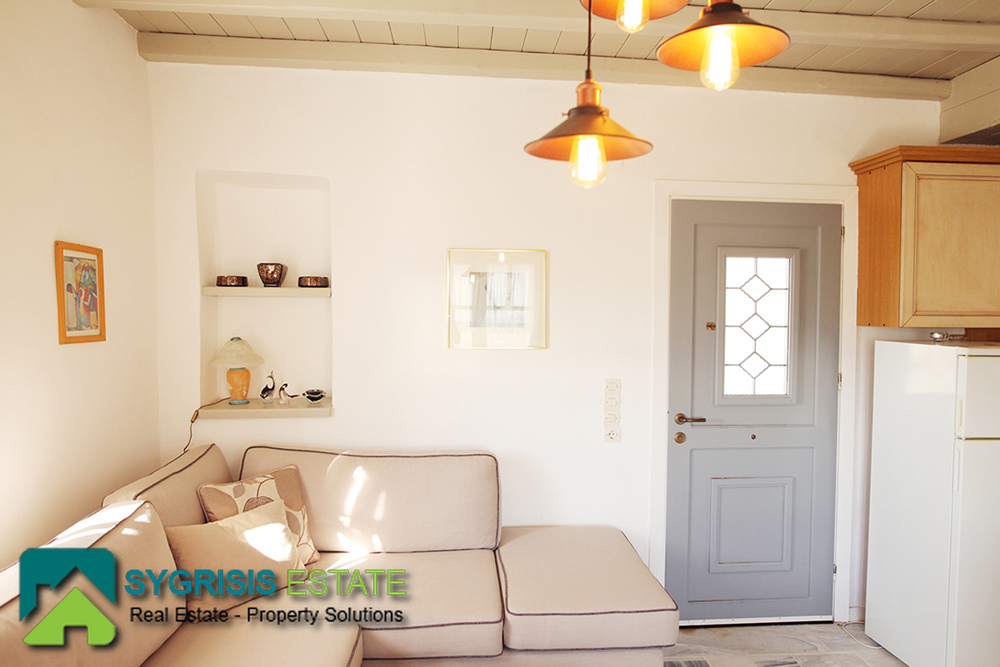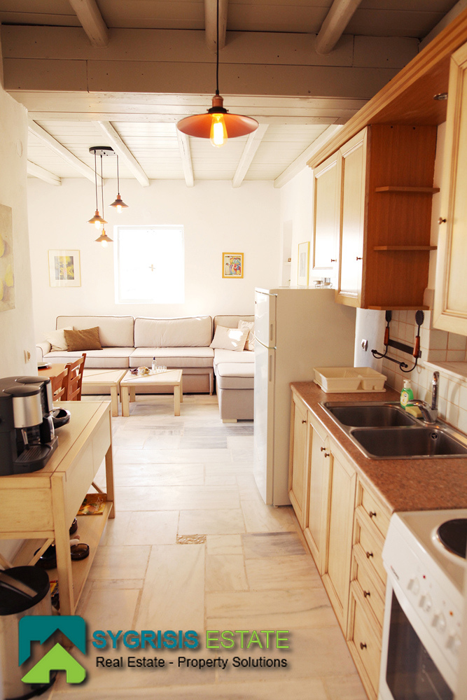Paros, Tzanes, Chryssi Akti, newly built apartment of 50 sq.m., built in 2008, traditional, furnished, frontage and dual aspect apartment, bright, 1 bedroom, 1 bathroom, open-plan kitchen with the living room, autonomous heating, balcony with pergola and amazing view, 100 sq.m. garden. It is located in a complex, mutually independent houses in the area Tzanes Over the Chryssi Akti. The common facilities of the complex are an open parking, a tennis court, and a Pool area with Bar and BBQ, from the balcony and the living room a unique view of the Golden Beach and the Aegean Sea.