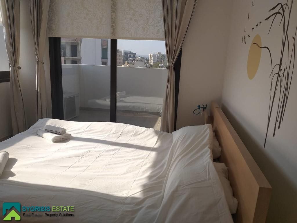 CYPRUS Larnaca, Apartment of 80 sq. m., constructed in 2011, fully renovated in 2019, 4th floor, it is a frontage and dual aspect apartment, bright, excellent layout, 2 bedrooms, 1 bathroom, open plan kitchen with the living room, security door, air conditioning, solar water heater system, tiles flooring, sliding energy-efficient aluminum window frames with double glazing, kitchen with ergonomic cabinets, stainless steel sink, built-in oven, ceramic hobs, washing machine, refrigerator, 3 air condition units, large sofa, large built-in wardrobes in the bedrooms, spacious bathroom with bathtub, the large covered balcony of 25 sq. m. with unlimited sea views, excellent road access, close to the international airport, and the new Larnaca casino.