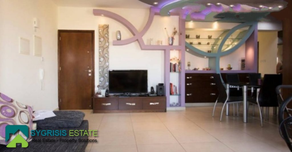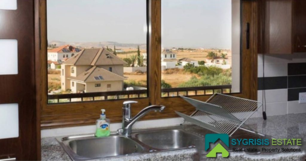 CYPRUS Larnaca, Aradippou, newly built apartment of 84 sq.m., built in 2011, 2nd floor, it is a frontage and dual aspect apartment, corner, bright, excellent layout, 2 bedrooms (1 master), 1 bathroom, 1 wc, hallway, open plan kitchen with the living room and dining area, security door, solar water-heater system, covered parking, energy efficient aluminum windows frames with double glazing, tile floors, built-in electrical appliances in the kitchen, ergonomic design of the kitchen with many cabinets and a double stainless sink, large bathroom with bathtub, large built-in wardrobes in the bedrooms, covered balcony of 18 square meters, in excellent location, just 5 km from the beach (10 minutes’ drive), 15 km from the airport (15 minutes’ drive), 50 km from Protaras (40 minutes’ drive), 40 km from Agia Napa (30 minutes’ drive), in a newly built area, near to supermarket, schools, public transoprtation, banks.