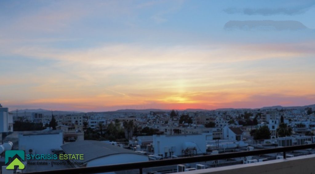 CYPRUS Larnaca, Center, newly built Penthouse Apartment of 102 sq.m., 5th floor, it is a frontage and dual aspect apartment, bright, excellent layout, 3 bedrooms (1 master), 1 bathroom, 1 WC, hall, living room, kitchen, security door, solar water-heater, underground parking space for 2 cars, energy efficient aluminum windows frames with double glazing, oak floors in whole apartment and tiles in the bathrooms, built-in electrical appliances in the kitchen, ergonomic design of the kitchen with many cabinets, large bathroom with bathtub, large built-in wardrobes in the bedrooms, covered balcony of 19 square meters with a stunning view, in excellent location, just 6 km from Mackenzie beach (10 minutes’ drive), 11 km from the airport (15 minutes’ drive), 55 km from Protaras (40 minutes’ drive), 45 km from Agia Napa (30 minutes’ drive), opposite the Super Home Center and next to Debenhams, near to supermarket, schools, public transportation, banks.