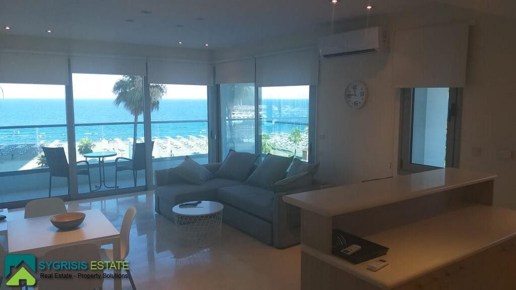 CYPRUS Larnaca, Finikoudes, Apartment of 50 sq. m., constructed in 2011, fully renovated in 2019, 3rd floor, it is a frontage and dual aspect apartment, bright, excellent layout, 1 bedroom, 1 bathroom, open plan kitchen with the living room, security door, air conditioning, solar water heater system, tiles flooring, sliding energy-efficient aluminum window frames with double glazing, kitchen with ergonomic cabinets, stainless steel sink, built-in oven, ceramic hobs, washing machine, refrigerator, 2 air condition units, large sofa, large built-in wardrobe in the bedroom, bathroom with shower, the large covered balcony of 15 sq. m. with unlimited sea views, excellent road access, close to the international airport, and the new Larnaca casino.