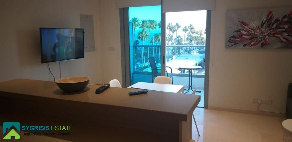 CYPRUS Larnaca, Finikoudes, Apartment of 65 sq. m., constructed in 2011, fully renovated in 2019, 3rd floor, it is a frontage and dual aspect apartment, bright, excellent layout, 1 bedroom, 1 bathroom, open plan kitchen with the living room, security door, air conditioning, solar water heater system, tiles flooring, sliding energy-efficient aluminum window frames with double glazing, kitchen with ergonomic cabinets, stainless steel sink, built-in oven, ceramic hobs, washing machine, refrigerator, 2 air condition units, large sofa, large built-in wardrobe in the bedroom, bathroom with shower, the large covered balcony of 15 sq. m. with unlimited sea views, excellent road access, close to the international airport, and the new Larnaca casino.