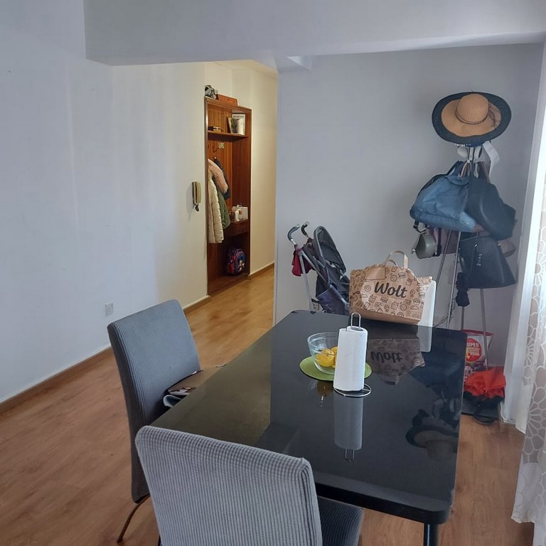 CYPRUS Larnaca, Foinikoudes, Apartment of 140 sq. m., constructed in 1996, 4th floor, it is a frontage and dual aspect apartment, bright, excellent layout, 3 bedrooms, 1 bathroom, 1 WC, kitchen, living room, dining room, corridor, air conditioning, solar water heater system, laminate flooring in corridor, dining room, living room and bedrooms, tiles flooring in bathrooms and kitchen, sliding energy-efficient aluminum window frames with double glazing and roller shutters, kitchen with ergonomic cabinets, stainless steel sink and electrical appliances (electric stove with oven, refrigerator, dishwasher, and washing machine), 5 air-condition inverter units, 1 double bed with its side table, large wardrobes in the bedrooms and in the corridor, bathroom with bathtub, covered balcony with sea views, excellent road access, quiet neighborhood, 5 minutes walking distance from the cosmopolitan Foinikoudes beach (150 meters).