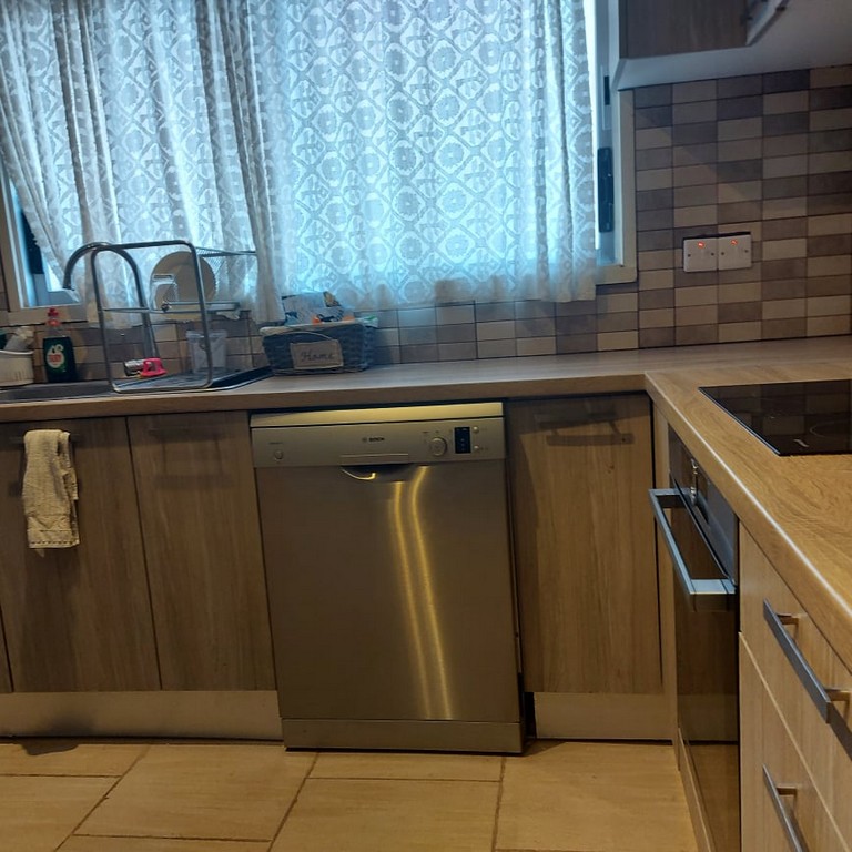 ΚΥΠΡΟΣ Λάρνακα, Φοινικούδες, Διαμέρισμα 140 τ.μ., κατασκευή 1996, 4ος όρφος, προσόψεως, διαμπερές, φωτεινό, άριστη διαρρύθμιση, 3 υπνοδωμάτια, 1 μπάνιο, 1 WC, σαλόνι, τραπεζαρία, κουζίνα, διάδρομος, κλιματισμός, ηλιακός θερμοσίφωνας, δάπεδα λάμινεϊτ σε διάδρομο, σαλόνι, τραπεζαρία και υπνοδωμάτια, δάπεδα πλακάκια σε μπάνια και κουζίνα, συρόμενα ενεργειακά κουφώματα αλουμινίου με διπλά τζάμια και ρολά, κουζίνα με εργονομικά ντουλάπια, ανοξείδωτο νεροχύτη, εντοιχισμένο φούρνο, εστίες, πλυντήριο πιάτων, πλυντήριο ρούχων, ψυγείο, 5 μονάδες κλιματισμού inverter, 1 διπλό κρεβάτι με το κομοδίνο του, ευρύχωρες ντουλάπες στα υπνοδωμάτια και στον διάδρομο, ευρύχωρο λουτρό με μπανιέρα, καλυμμένη βεράντα με θέα θάλασσα, άριστη οδική πρόσβαση, σε ήσυχη γειτονιά, 5 λεπτά με τα πόδια από την κοσμοπολίτικη παραλία των Φοινικούδων (150 μέτρα).