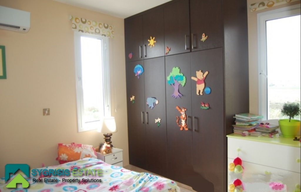 CYPRUS Larnaca, Oroklini, newly built apartment of 80 sq.m., built in 2010, 2nd floor, it is a frontage and dual aspect apartment, bright, excellent layout, 2 bedrooms (1 master), bathroom, open plan kitchen with the living room, fully furnished and equipped, air conditioning, security door, solar heating system, covered balcony with a nice view, parking space, tile floors, energy efficient aluminum window frames with double glazing, ergonomic cabinets in the kitchen, large built-in wardrobes in the bedrooms, near all facilities, supermarkets, public market, schools, bank and transportation.