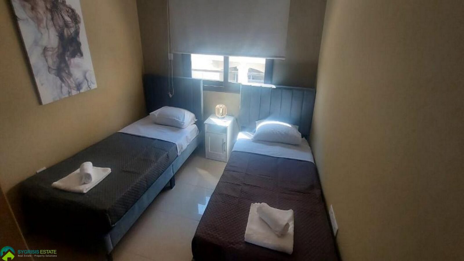 ΚΥΠΡΟΣ ΛΑΡΝΑΚΑ, Τερσεφάνου, 87 τ.μ., πλήρως ανακαινισμένο, φωτεινό, άριστη διαρύθμιση, πλήρως επιπλωμένο και εξοπλισμένο, 2 υπνοδωμάτια, 1 μπάνιο με μπανιέρα, ενιαία κουζίνα με σαλόνι και τραπεζαρία, βεράντα 15 τ.μ. στην πρόσοψη καλυμμένη με πέργκολα, δική του καλυμένη θέση στάθμευσης, κοινόχρηστη πισίνα, γήπεδο τένις, πόρτα ασφαλείας, κλιματισμός, δάπεδα πλακάκια σε όλους τους χώρους, ενεργειακά κουφώματα αλουμινίου με διπλά τζάμια, εργονομικά ντουλάπια στην κουζίνα, μεγάλες εντοιχισμένες ντουλάπες στα υπνοδωμάτια. Βρίσκεται σε μοναδικό σημείο, στο Συγκρότημα Paramount Gardens Resort, η Αλυκή Λάρνακας απέχει 12χλμ. από το διαμέρισμα, ενώ το Τζαμί Τούζλα βρίσκεται 14χλμ. μακριά. Βρίσκεται 5 λεπτά από το διεθνές αεροδρόμιο της Λάρνακας.