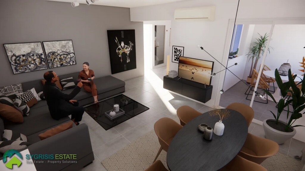 Cyprus, Nicosia, Agioi Omologetis. Apartment 102 sq.m., 2nd floor, modern and spacious, front facing, airy. It consists of 2 bedrooms, 2 bathrooms with shower, one en-suite, high quality wardrobes and interior doors, fireproof security door,The apartment has been upgraded energetically, with new electrical and plumbing installation, open kitchen, new double aluminum windows in all windows and AC A++ in all areas. It is practically configured, with many storage spaces and a separate utility room for washing machine, dryer and storage. It is located in one of the most beautiful and at the same time quiet areas of the center, with easy access to all the necessities, banks, schools, shops, restaurants, universities, shopping center and the old town of Nicosia.It is an ideal choice for business exploitation, accommodation for families, students, professionals, but also for couples or even tourists. It is located near the European University 1.5 km, embassies and schools.The building was built in 1986 and is in very good condition and aesthetics. The apartment has a covered parking space, and easy parking in the area.