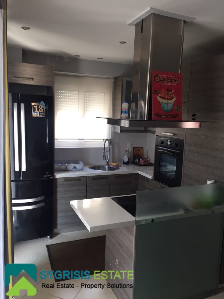 Palaio Faliro Amfithea, newly built apartment 80 sqm, 3rd floor, façade, dual-aspect , bright, 2 bedrooms, construction of 2008, 1 bathroom, 1 wc, open plan kitchen living room, autonomous heating with natural gas, air conditioning, fireplace, security door, Solar water heating , boiler, awnings, panoramic view, underground parking, storage room, renovated kitchen, video intercom, alarm security system, pets allowed, aluminum window frames with double glazing, tiled floors.