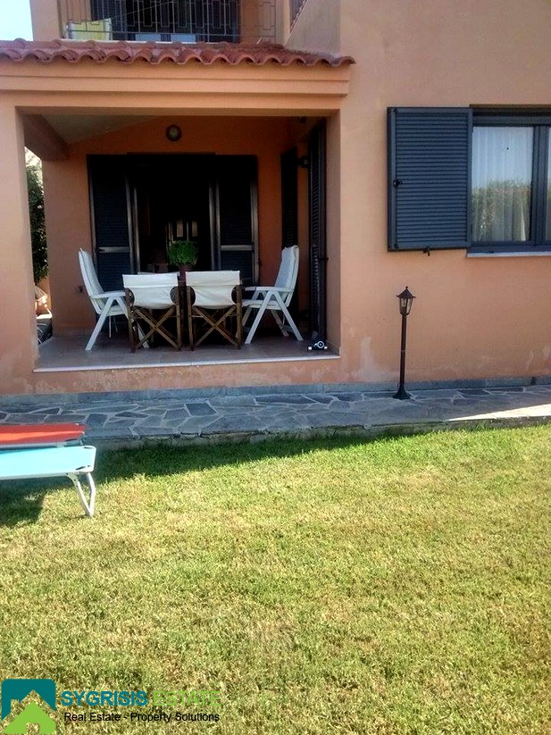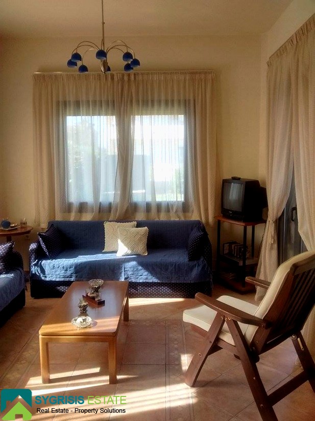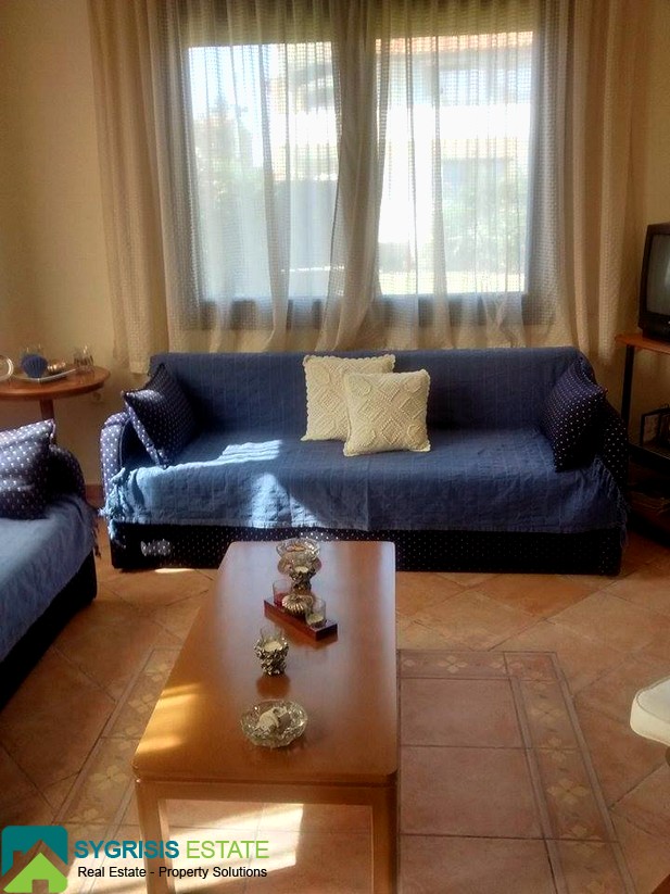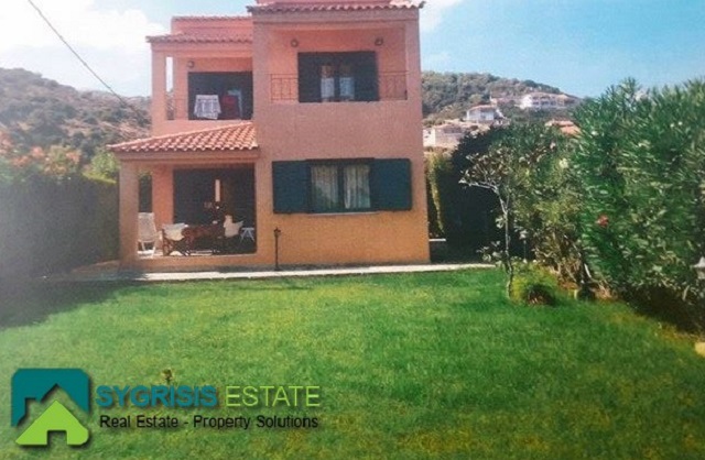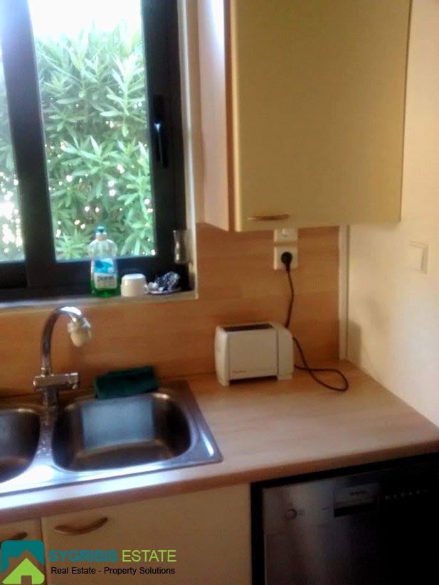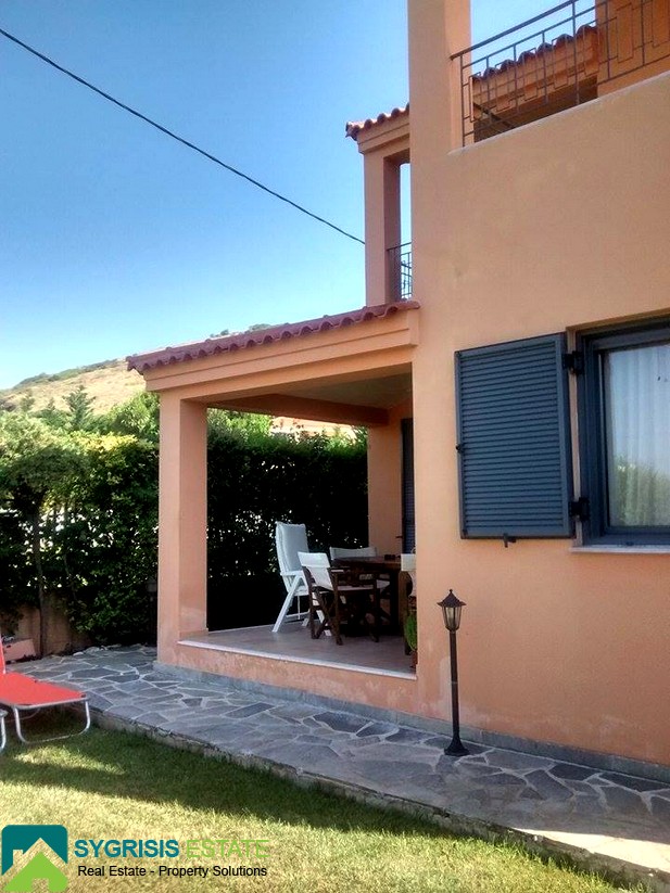 Evia , Mourteri, 2 level Detached house of 100 sqm, ground floor – 1st floor, bright, frontage, dual-aspect, construction of 2001, 1 bathroom, 1 wc, seaside, BBQ, furnished, autonomous heating using petrol, fireplace, security door, aluminum window frames, awnings, garden, excellent condition. At ground floor is the kitchen with the living room, shower & balcony, 2 bedrooms are on the top floor each with its balcony and a bathroom. It has a large yard with nice grass garden and a Barbeque. It is fully furnished and equipped. Has refrigerator, washing machine, dishwasher, electric oven. The house is about 50 meters from the beach of Murteri which has umbrellas, deckchairs, cafe and restaurant. Features: gardener and maid. Near supermarket market. Ideal for families. Rent for short term and long term rental. lower lease 1 week.
