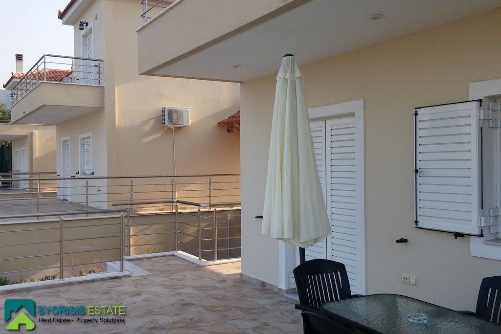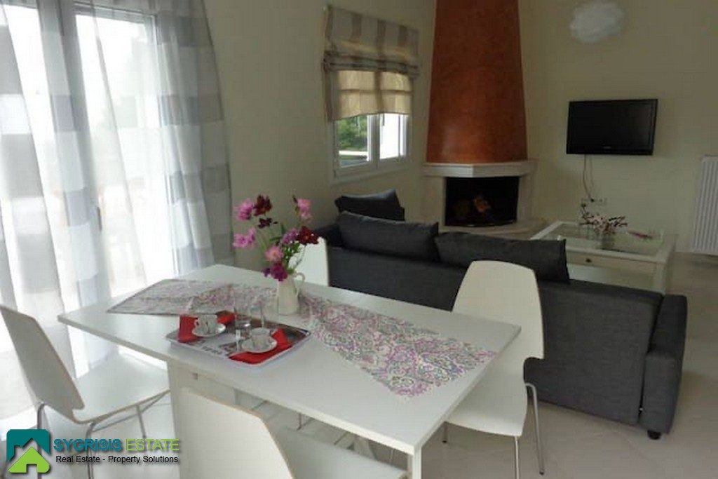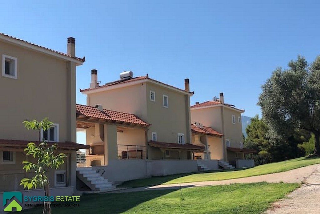 3 beautiful villas of 125 sq.m. each, on a plot of 3,600 sq.m., Constructed in 2011, each has 2 bedrooms( 1 king-size bed and one double or 2 single bed). 2 bathrooms( 1 main upstairs along with the bedrooms and 1 smaller downstairs). Built-in fireplace in the living room decorated with marble and stone details, large living room, dining area, and open kitchen. White-tiled floors throughout the house, marble stairs and fireplace finishing’s, tiled bathrooms, and porcelain toiletries. Each bedroom has built-in wardrobes that offer massive space.