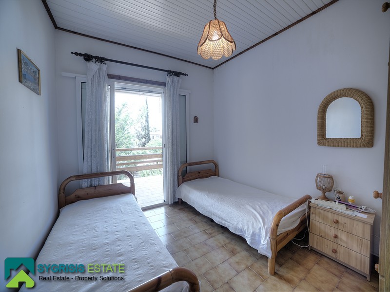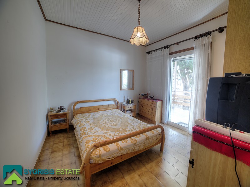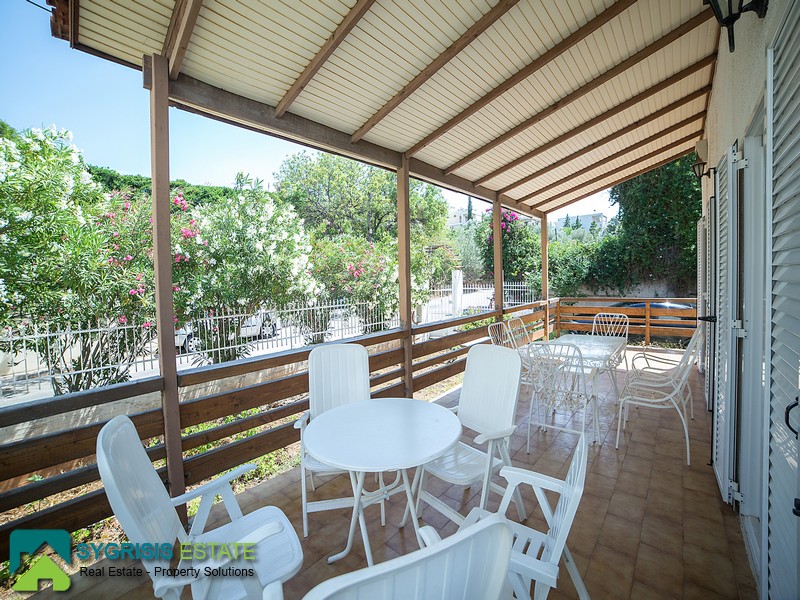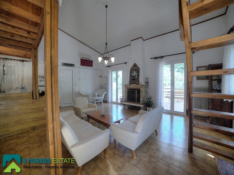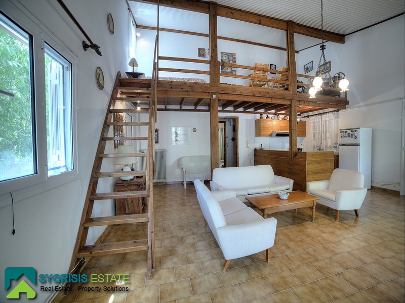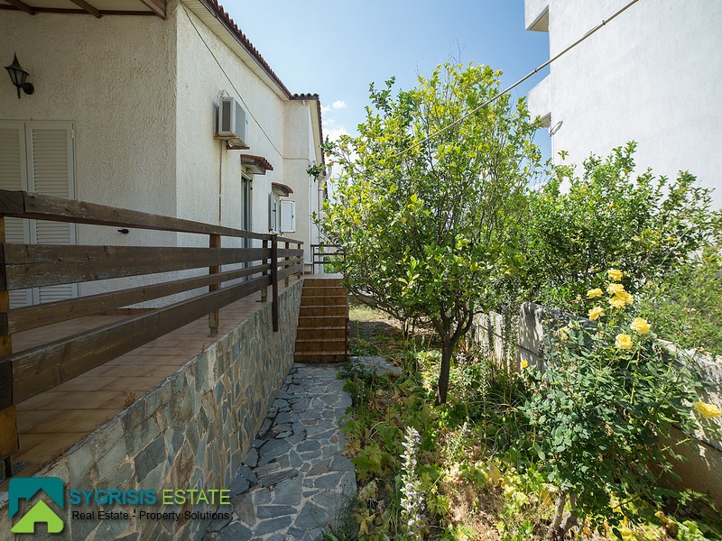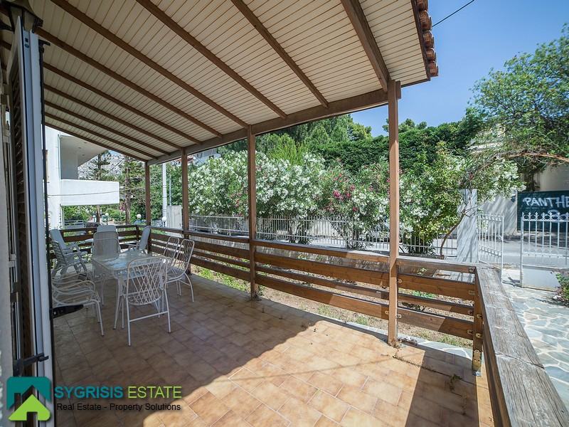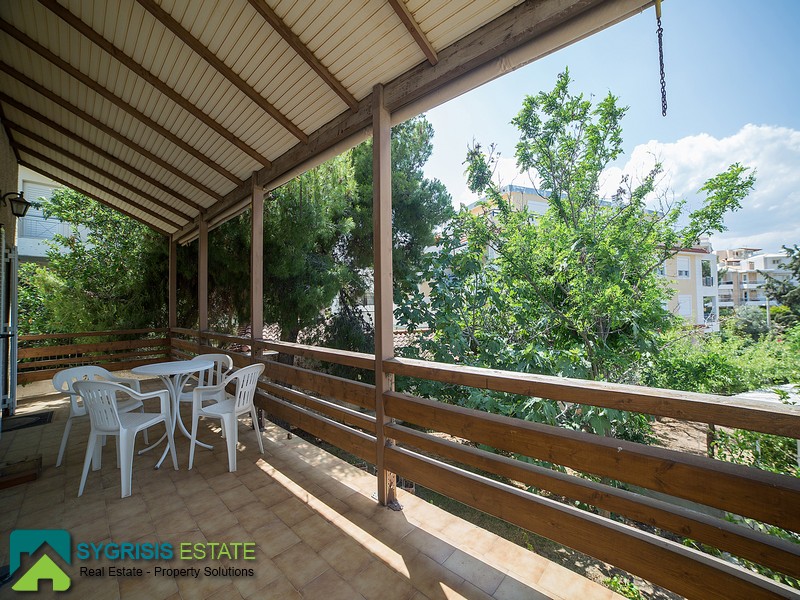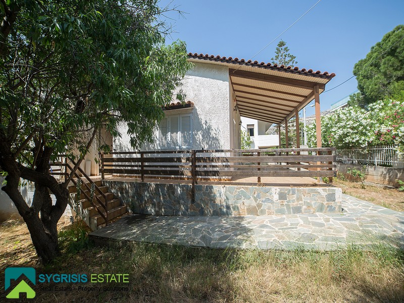 ATTICA Saronida Detached house of 85 sq.m., in a plot of 550 sq.m., 450 sq.m. garden, construction 1985, elevated ground floor, it is frontage and dual aspect, bright, excellent layout, 2 bedrooms, bathroom, open plan kitchen, fully furnished and equipped, interior attic of 15 sq.m., autonomous heating with heating oil, air conditioning, fireplace, solar water heater system, security door, security alarm system, tiles flooring, energy-efficient aluminum window frames with double glazing, screens and shutters, large veranda on the facade covered with pergola, open parking, storage room of 10 sq.m., 150 meters from the beach.