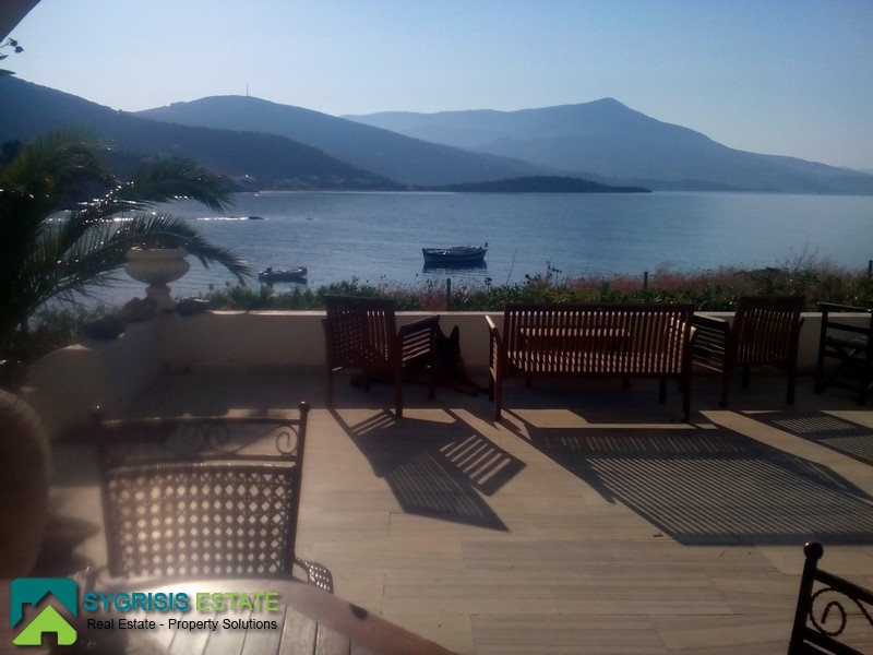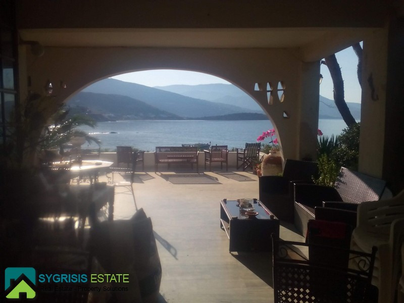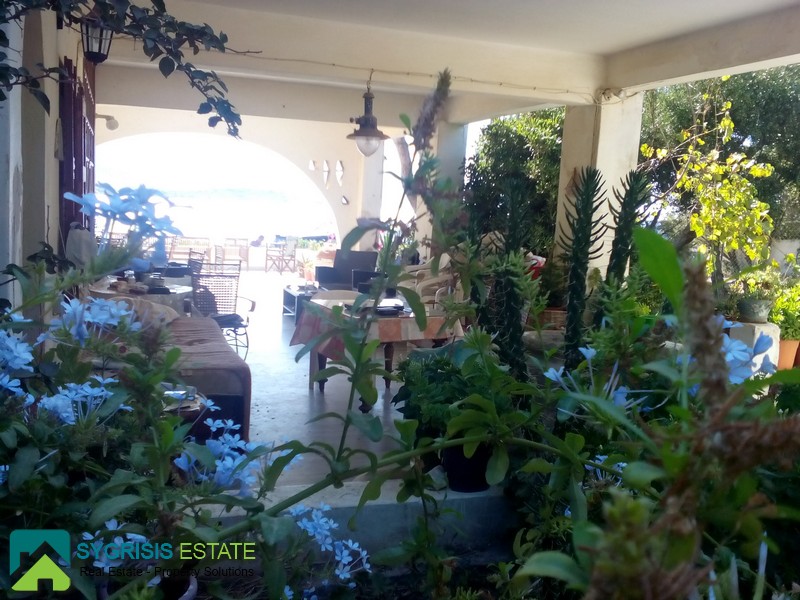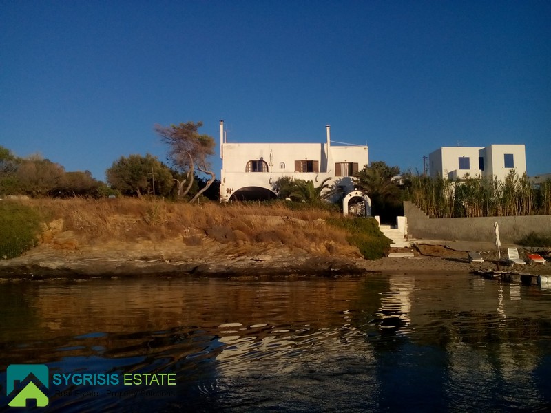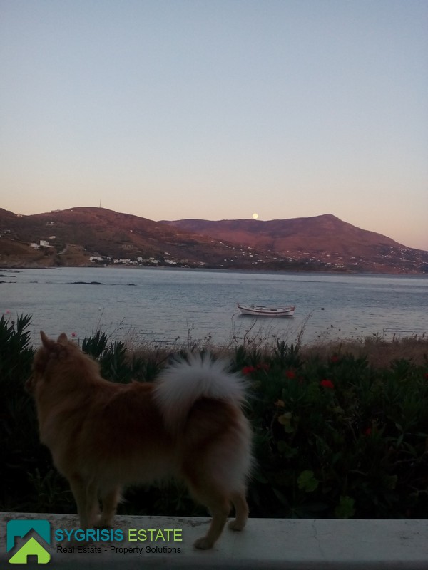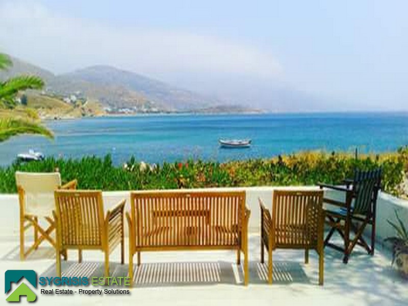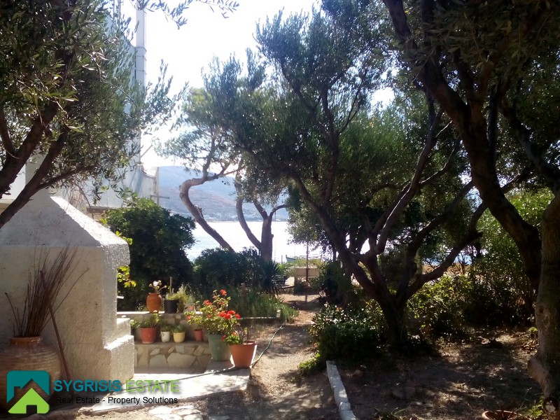 CYCLADES ISLANDS ANDROS Gavrio, Two Storey Traditional Detached House 100 sq.m., on a plot of 340 sq.m., built in 1982, fully renovated in 2013, ground floor, it is a frontage dual aspect and corner house, bright, excellent layout, 3 bedrooms, 2 bathrooms, hallway, kitchen, unlimited sea view, garden, unique and rare place excactly in front of the sea with the last step of the stairs on a beautiful sandy beach, is like you have a private beach, in a corner plot full with olive trees, large covered balcony of 53 sq.m. with marble and a real Magnificent view for unforgettable moments, licensed for future construction building of 97 sqm, has a brick barbecue in the garden, 500 meters from the port of Gavrio and the public market and 1000 meters from the stunning sandy beach of Agios Petros. Available from August 2018.