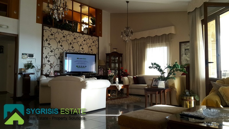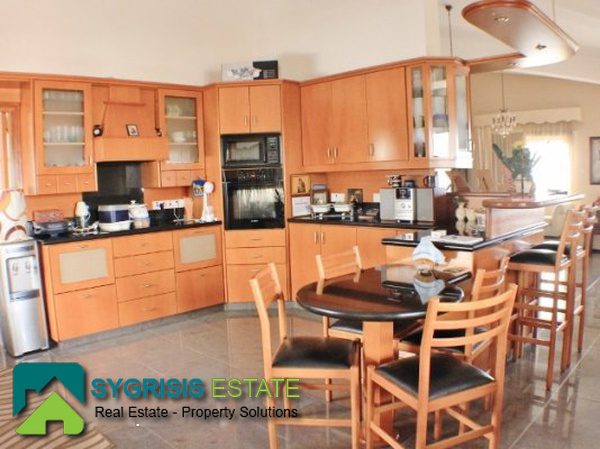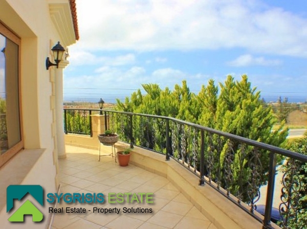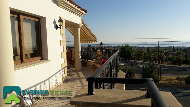 CYPRUS Paphos, Emba, detached house of 435 sq.m., built in 2002, 3 levels, ground floor – 1st and 2nd floor, it is from side to side, 7 bedrooms, 2 bathrooms, 2 wc, On a plot of 484 sq.m., open plan kitchen with dining area, central heating, air-condition, fireplace, security door, solar water-heater, unlimited view, parking space, garden with barbecue, excellent condition, aluminum windows with double glazing, Minute drive from downtown Paphos and a 10-minute drive from the beach, Communications. There is a luxurious and spacious 3 bedroom villa on 3 levels which features an entrance hall and a staircase leading to the living dining area with a partly separate kitchen with a breakfast bar and a guest toilet. Patio doors lead to large covered verandas with amazing sea and mountain views. The veranda also has a barbeque. The 3 double bedrooms are a few steps higher, the master bedroom enjoys its own bathroom and the other 2 bedrooms have the use of the family bathroom. There is an office with panoramic view off Paphos city and also with nice interior view of the living room seperated with wooden boxes.The other 3 bedroom villa which has a separate entrance is similar to the one above and it’s not quite finished yet as it needs the finishing touches which is an advantage for buyers who want to put their personal touch. The same applies to the one bedroom flat which also has a separate entrance. This is an ideal property for a large family or for investment purposes.
