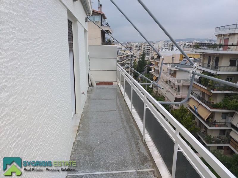 ATHENS ALIMOS Kalamaki, Penthouse Floor-Through Apartment of 53 sq.m., excellent condition, partly renovated, 5th floor, it is a frontage and dual aspect apartment, bright, excellent layout, 1 bedroom, bathroom, entrance hall, living room, kitchen, corridor, central heating with heating oil, balcony on the facade covered with awnings and unlimited view, private terrace, marble flooring in the living room, hardwood flooring in the bedroom, wooden window frames with shutters, new renovated kitchen with ergonomic cabinets and double stainless steel sink, built-in wardrobe in the bedroom, renovated bathroom with shower cabin, newly painted, near supermarkets, commercial stores, pharmacies, bakeries, banks, cafes, restaurants, schools and transportion, an excellent apartment, ideal for students.