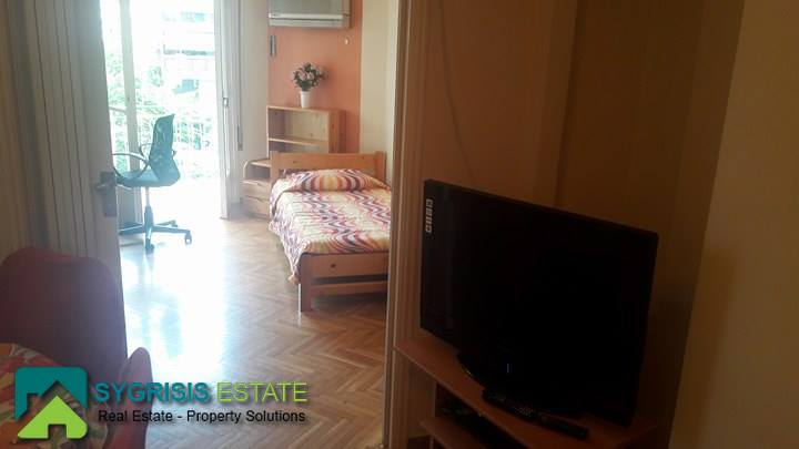 ZOGRAFOU Ano Ilisia, apartment 60 sq.m., built in 1963, renovated 2012, 1st floor, it is frontage – dual aspect and corner apartment, 2 bedrooms, bathroom, hallway, living room, kitchen, central heating, air condition, excellent condition, large balcony, wooden window frames with roller shutters, oak floors, fully furnished and equipped with TV, electric stove with oven, microwave oven, refrigerator, washing machine, vacuum cleaner, iron, mixer, juicer, all cooking tools and utensils, each bedroom has one single bed and office desk, sofa bed in the living room and dining table, shower cabin in the bathroom, very close to transportation, universities, hospitals, supermarket, suitable for 2 students, newly painted.