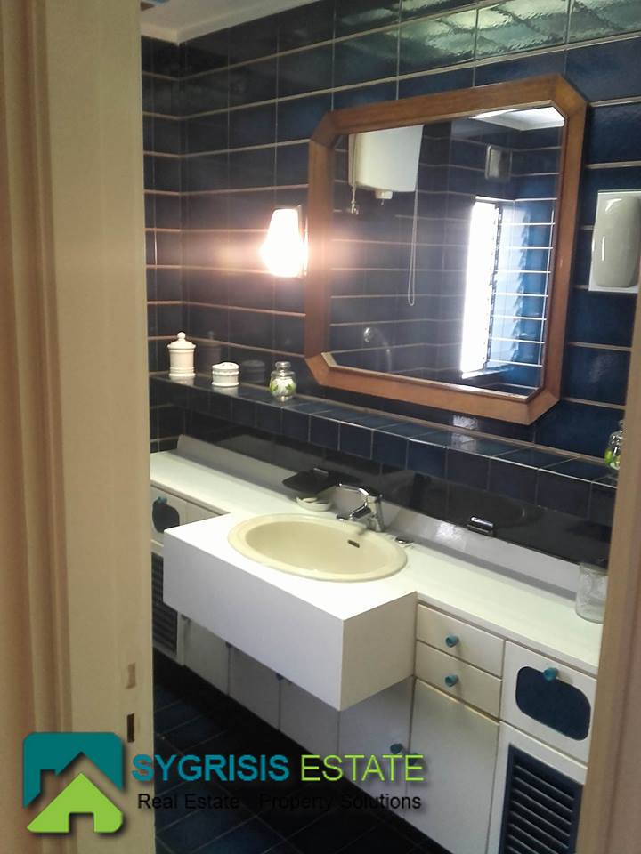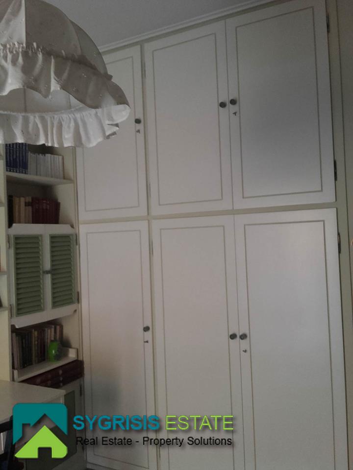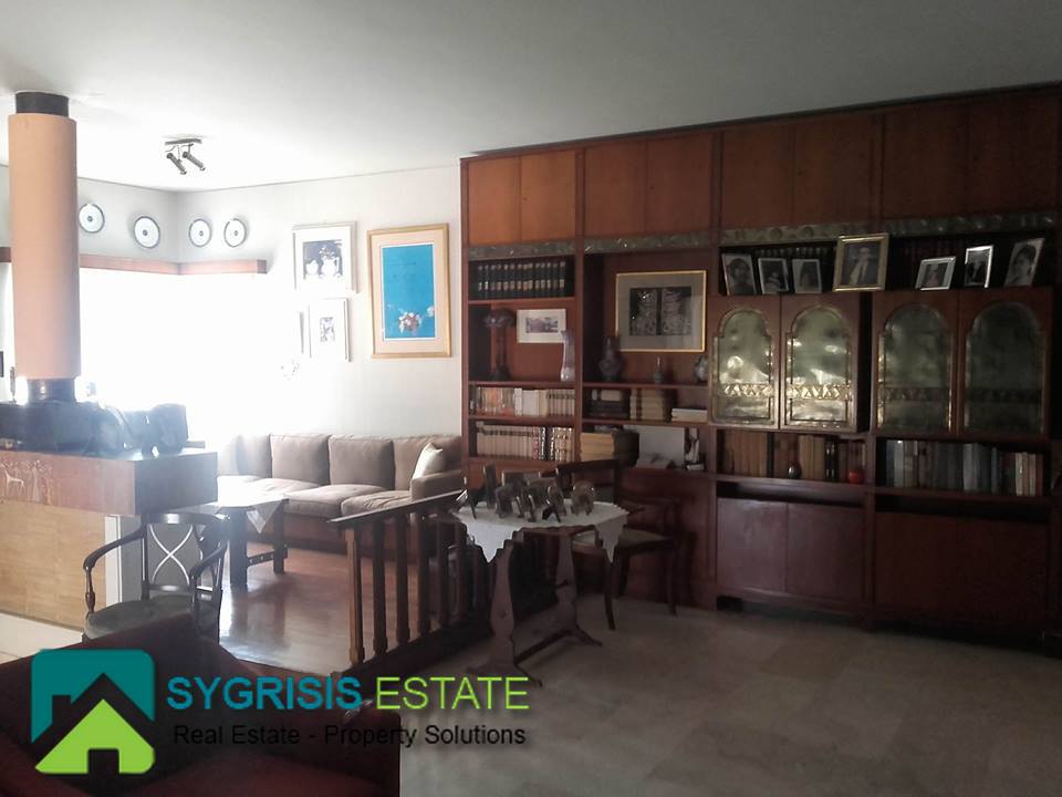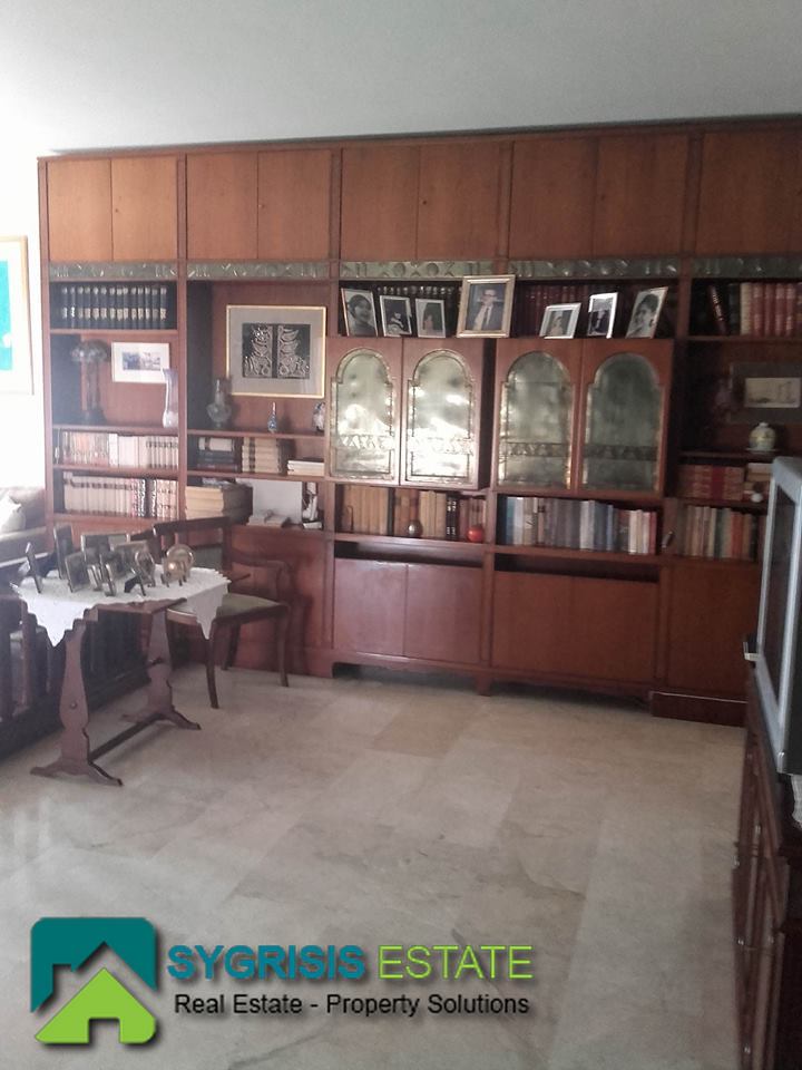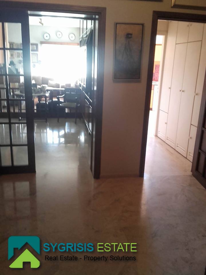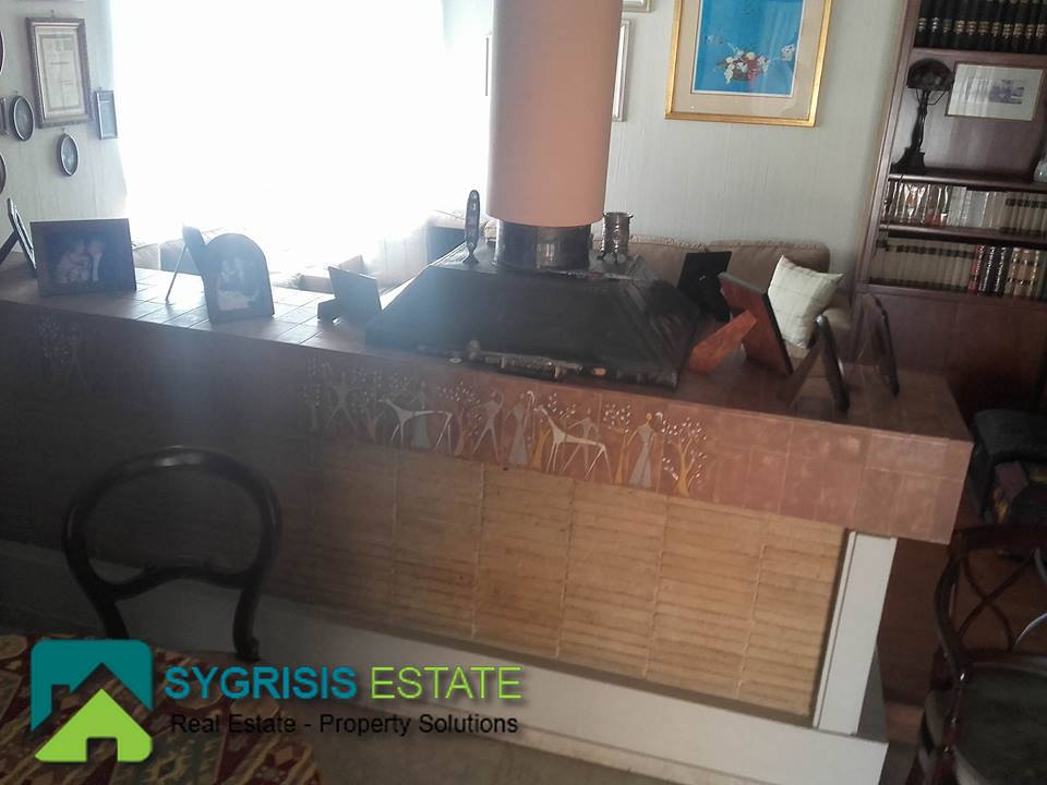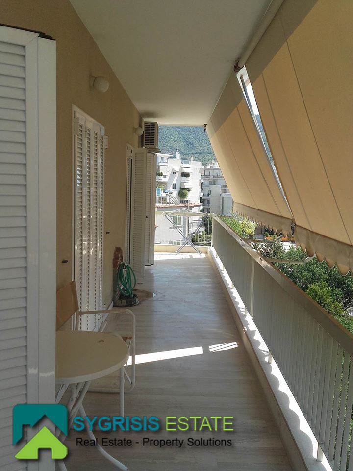 ATHENS CHOLARGOS Faneromeni, penthouse apartment of 140 sq.m., built 1980, excellent condition, 4th floor, frontage dual aspect and corner apartment, fully furnished and equipped, 3 bedrooms, 2 bathrooms (one with bathtub and the other with shower) living room, dining room, kitchen, central heating with natural gas and boiler for 24 hours hot water, air conditioning, fireplace, security door, security alarm system, 2 parking spaces, quiet location, sliding aluminum window frames with double glazing and shutters,large verandas with new awnings with beautiful view to Hymettus and Penteli mountains, living room with large seating area fitted bookshelves and marble floors, oak floors in the bedrooms, many closets as storage areas, Cabinet Shoe Storage hallway furniture, all furnitures made of solid wood handcrafted, north east orientation, elevator, pets allowed.