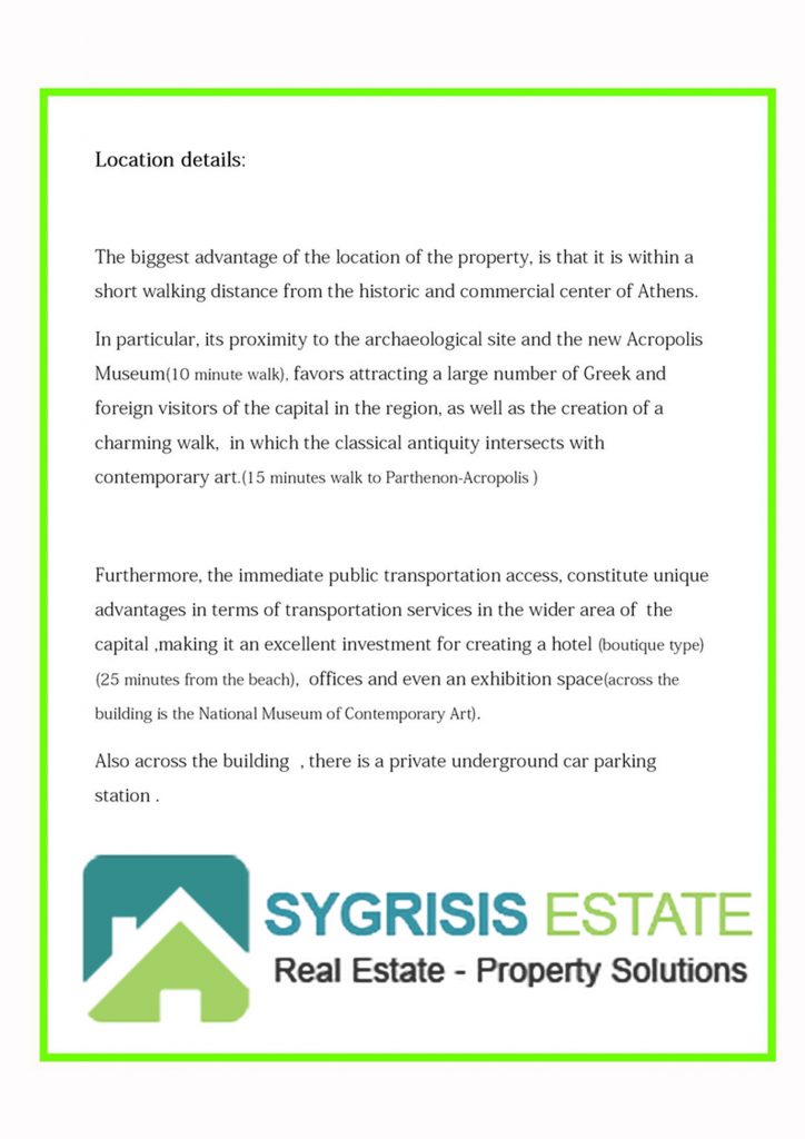 ATHENS KOUKAKI, building 1,022 sq.m., basement – ground floor – mezzanine – 1st-2nd – 3rd-4th – 5th to 6th floor, bright, corner, building 70, height 26 m., Three phase power, lift, free, needs renovation Athens sold old hotel on corner plot of 150 sqm in a good spot, in a separate building 1022 sqm Koukaki. It consists of a basement, ground floor, semi-floor and 6 floors. Did license C category, has 30 rooms, a reception on the ground floor, breakfast room penthouse 6th floor with large terrace overlooking the Acropolis which can function as a café-restaurant-bar. Located within walking distance to the Metro, the Acropolis Museum and the new National Museum of Contemporary Art Fix. Ideal investment in a very up and coming area with a variety of property possibilities of use.