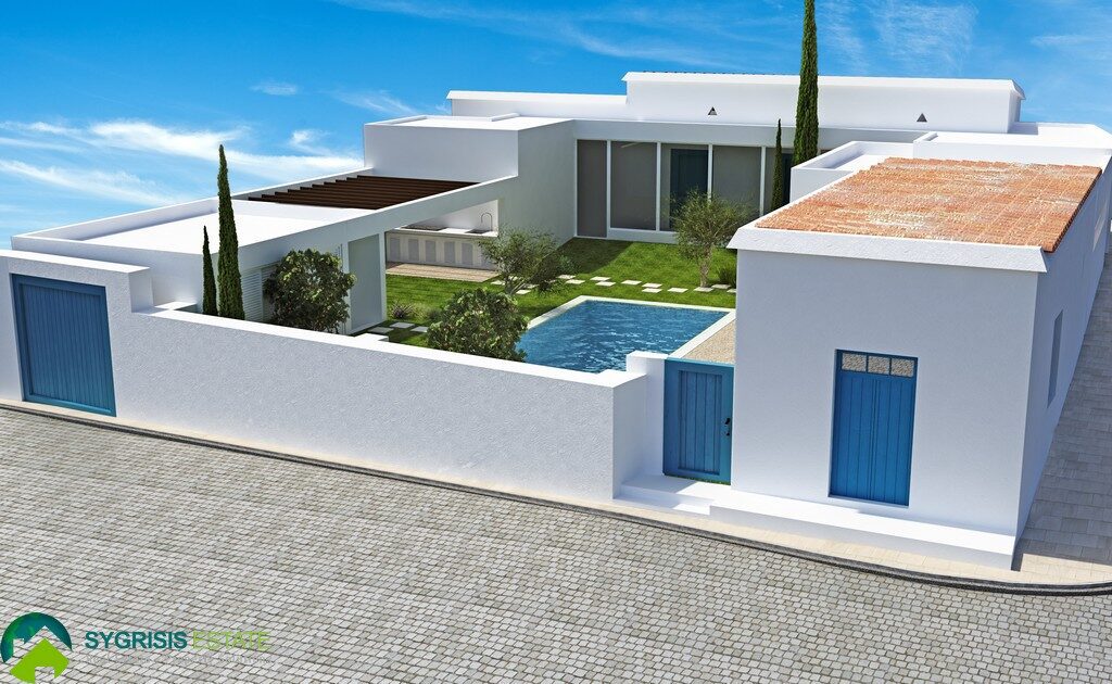 Λάρνακα-Τερσεφάνου οικόπεδο εμβαδόν 437τ.μ , 15 λεπτά με το αυτοκίνητο από τη θάλασσα και το αεροδρόμιο Λάρνακας Υπάρχοντα Κτίρια (χρήζουν πλήρους ανακαίνισης) 128 m2 Οι Φωτογραφίες είναι μακέτα που δείχνει πως μπορεί να φτιαχτεί ένα σπίτι. Αίτηση πολεοδομικής άδειας : Συνολικό στεγασμένο κτίριο 196 m2 συν 21 m2 στεγασμένο γκαράζ Όλο το σπίτι ισόγειο, τέσσερα υπνοδωμάτια, τρία μπάνια, παροχή πισίνας. Ο δήμος αναμένεται σύντομα να ξεκινήσει πλακόστρωση υποδομών και δρόμους γύρω από το σπίτι. Τιμή:120.000 Ευρώ Larnaca-Tersefanou 437 sq.metres,15 min drive to the sea and Larnaca airport Existing Buildings (need full restoration ) 128 m2 The photos is a model how can be made with house. Planning permit application : Total covered building 196 m2 plus 21m2 covered garage All house ground floor, four bedrooms , three bathrooms, pool provision The municipality is expected soon to start infrastructure paving and roads around the house.