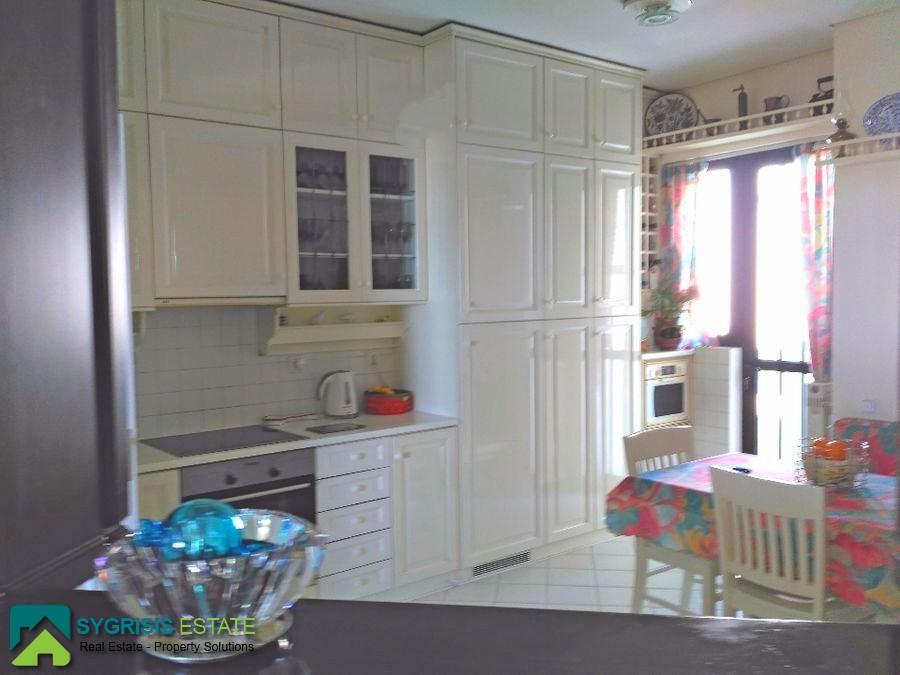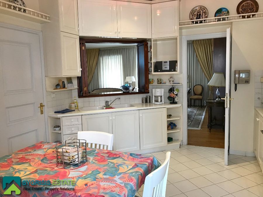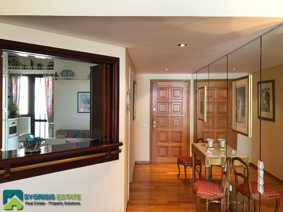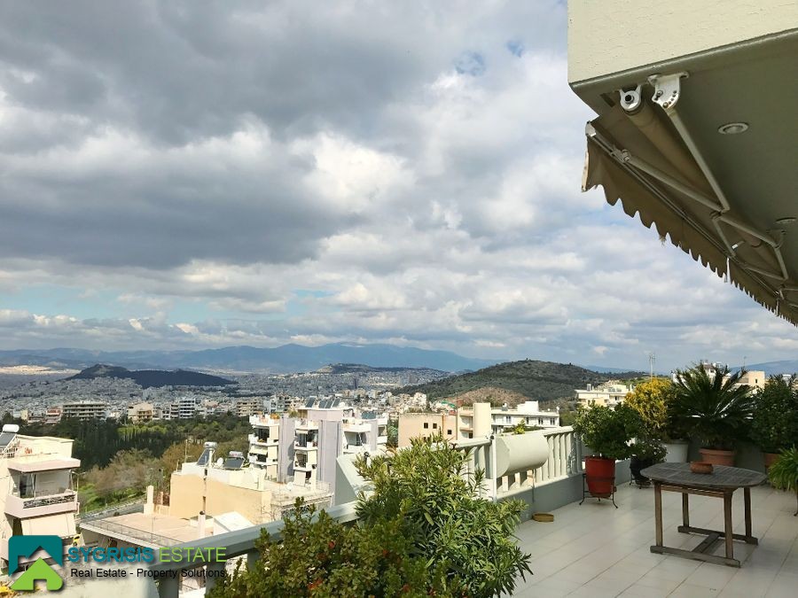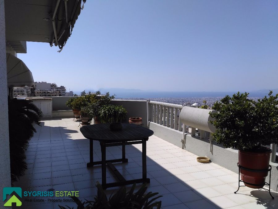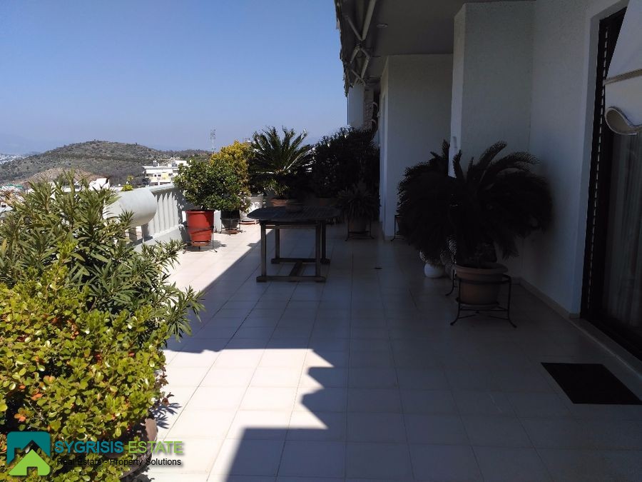 Kareas, Luxury Penthouse Apartment 140 sq.m., constructed in 1990, fully renovated in 2016, excellent condition, 5th floor, it is a frontage and dual aspect apartment, bright, excellent layout, 3 bedrooms, 2 bathrooms, large living room with dining area, entrance hall, large kitchen with passthrough window, the kitchen has two entrances and a big dining table, all bedrooms are large with built-in wardrobes covered with mirrors, very large bathroom (with two washbasins) and covered space for the washing machine and for the laundry, large wc with shower, large living room with dining area, autonomous heating with petrol, fireplace, solar water heater system, security door, security alarm system, entrance camera intercom, large covered parking space for 2 cars, storage room in the basement of 20 sq.m. fully equipped with shelves, energy efficient aluminum window frames with double glazing screens and shutters, hardwood flooring throughout the apartment, satellite antenna, Three-phase electric power and night plan electricity charges, spacious facade balcony (18 meters x 4.70 meters) with BBQ and also big balcony on the back (10 meters x 2.5 meters) covered with awnings with electric mechanism and unlimited view of the Saronic Gulf, Acropolis, Lycabettus Mountain, all over Attica, a unique apartment, in an excellent location, in a well maintained building, with easy access to the public transportation, schools, supermarkets, very close to Katechaki Avenue and Attiki Odos highway.