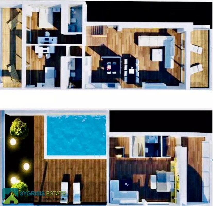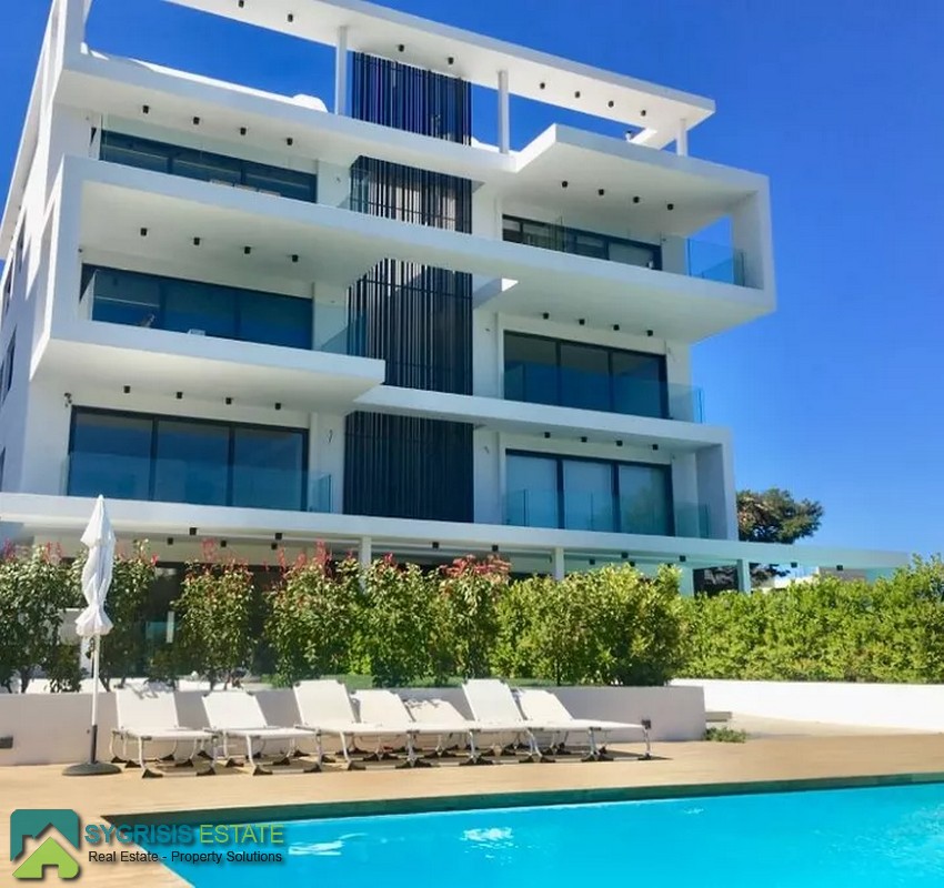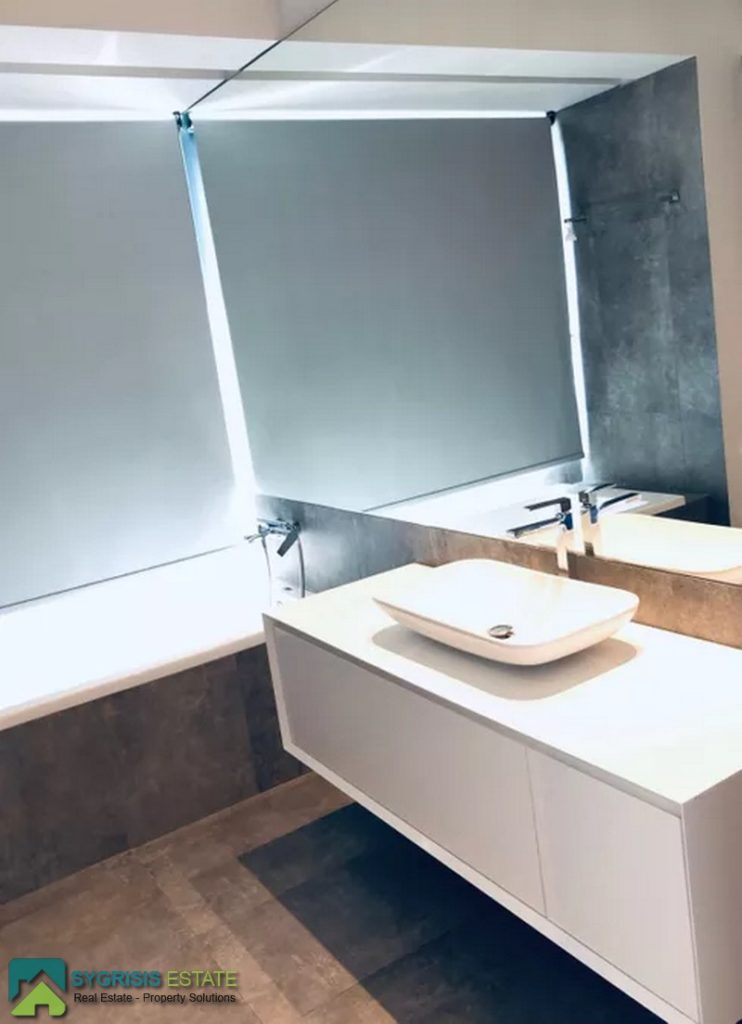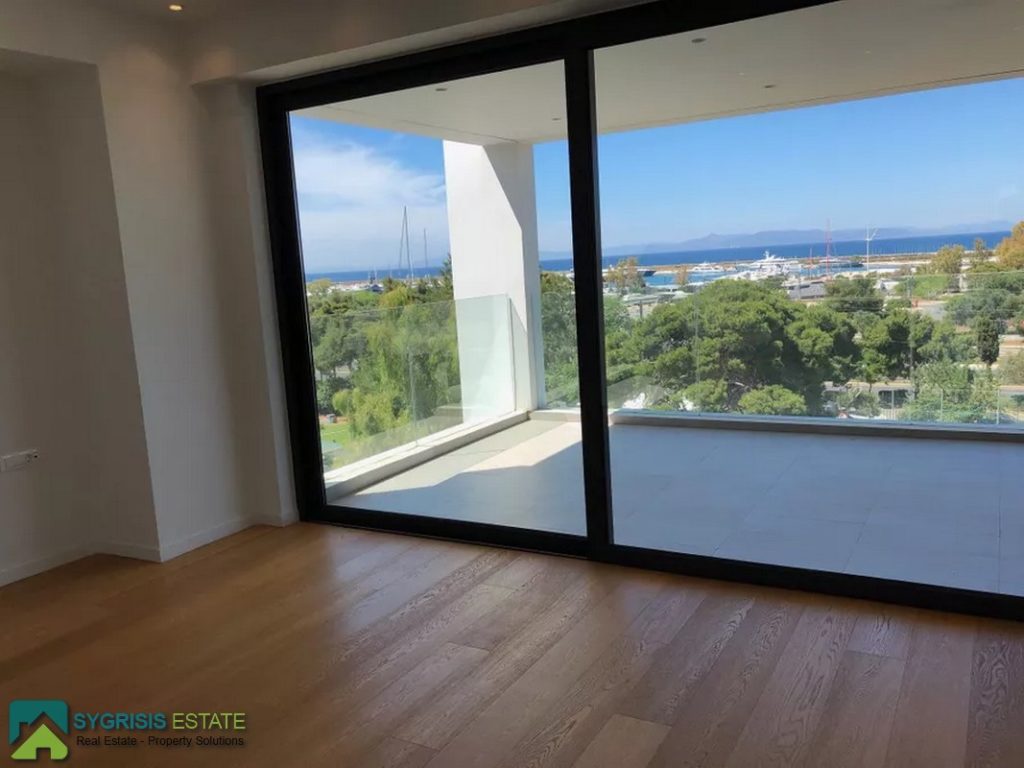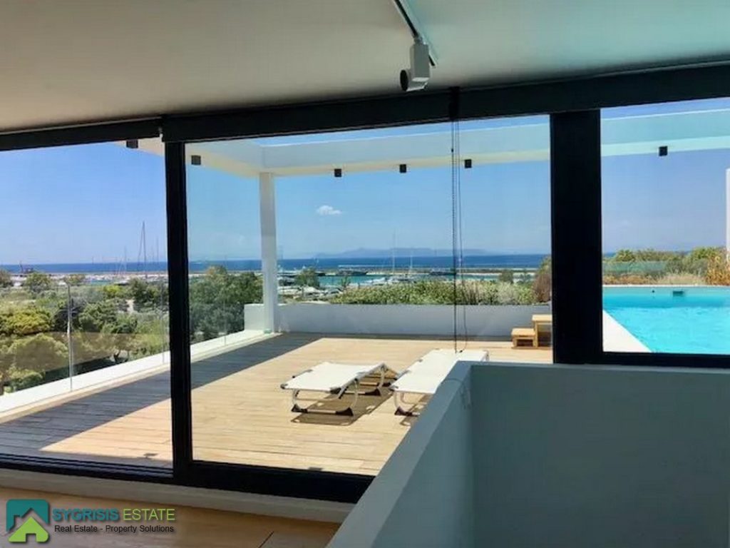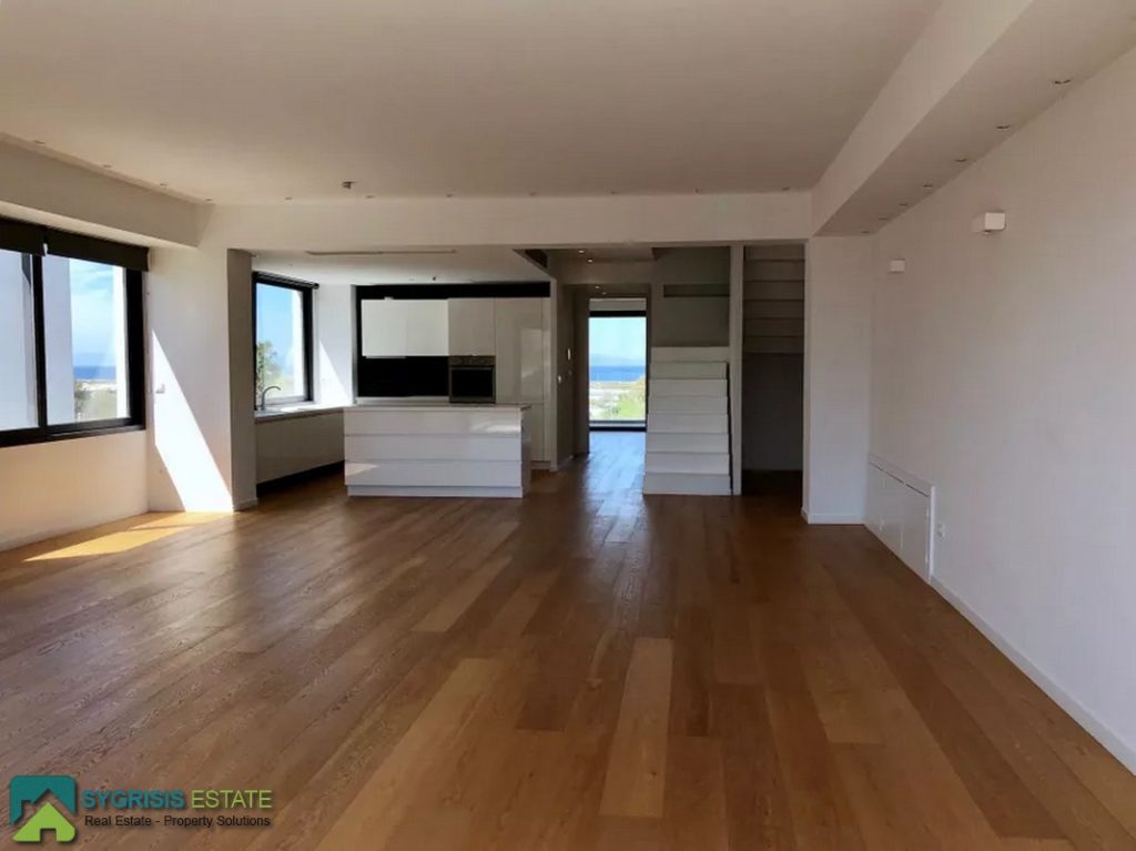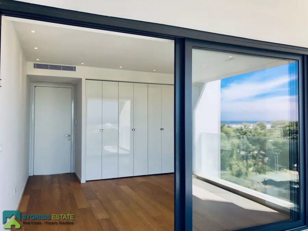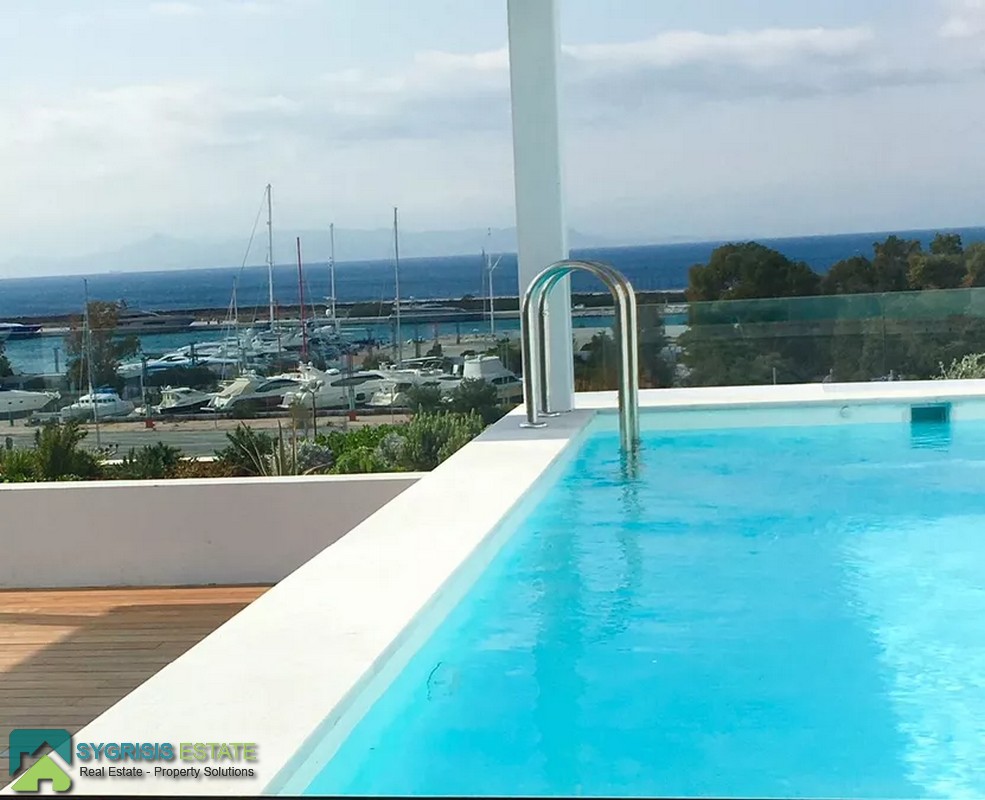 ATHENS ELLINIKO, Kato Elliniko, New Development, Luxury Penthouse Maisonette of 215 sq.m, Size of balconies: 100 sq.m., Constructed in 2017, 3rd & 4th floor with private roof garden, frontage and dual aspect, 3 bedrooms (2 master with en-suite bathrooms), 1 bathroom and 1 guest WC, open concept kitchen with the living room and dining area, autonomous underfloor heating system with natural gas, energy-efficient fireplace, central air conditioning system, solar water heater system, security door, alarm security system, entrance camera intercom, security windows, large balconies facing the Elliniko Marina and amazing sea views, underground parking for two vehicles, storage room in the basement, garden, private swimming pool, energy class A +, there is also an optional independent personnel room in the basement, Average monthly shared expenses: 90 €, Distance from sea (m): 250 meters.