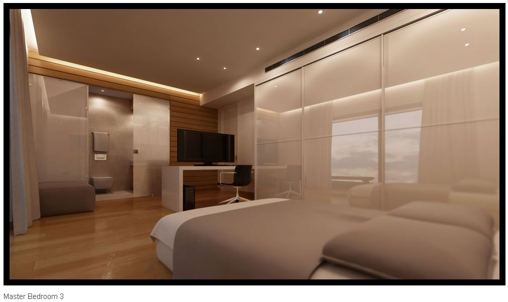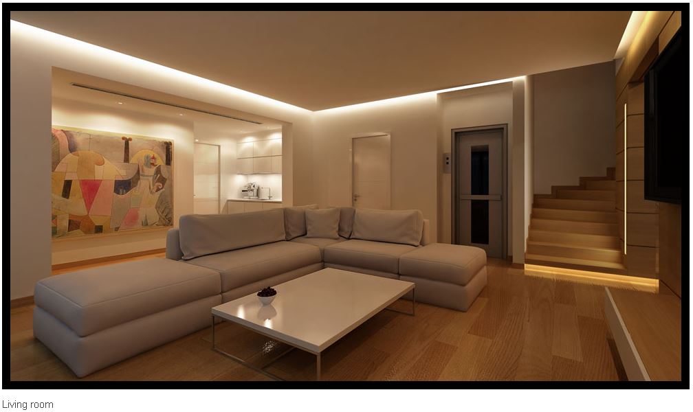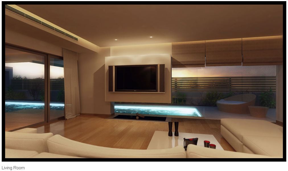 The ground level comprises of a spacious living and dinning area, a separate or open plan kitchen (according to customer’s preference) and a guests’ bathroom.