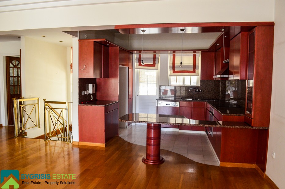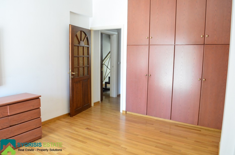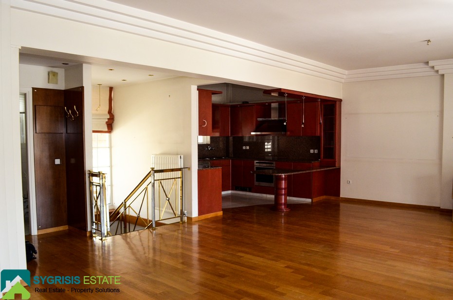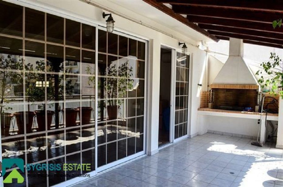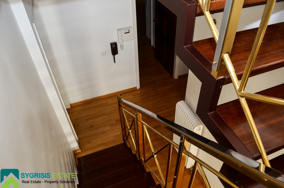 For Rent, Luxurious maisonette , 143 sq.m. , 3 rd and 4 th floor, frontage, dual aspect, 1993 construction, complete renovation 2004, 3 bedrooms, open plan living room – kitchen, 2 bathrooms, 1 w / c, fireplace lined marble and wood, stucco ceiling construction with dimmer switches and interior lighting, installation for Home Cinema, fitted kitchen with granite countertops and wood cabinets, electrical extractor fan devices with self-cleaning filter, stove, dishwasher are INOX and Neff brand, whirlpool bath 2 sinks, bath storage, shower cabinet, solar water heater, specially shaped room for dryer and washing machine, BBQ with ventilation motor, balcony 36 m x 9 m Wooden roof of impregnating wood, 3 air condition inverter, awnings, balconies all around, autonomous heating with thermostat, security alarm and intercom in both 2 floors , wooden staircase with brass railing, everywhere wooden floors and wooden interior doors, wardrobes all fitted and wooden, wooden wall shoe storage, aluminum window frames with double glazing, security door, storage room on the balcony, 1 parking space.