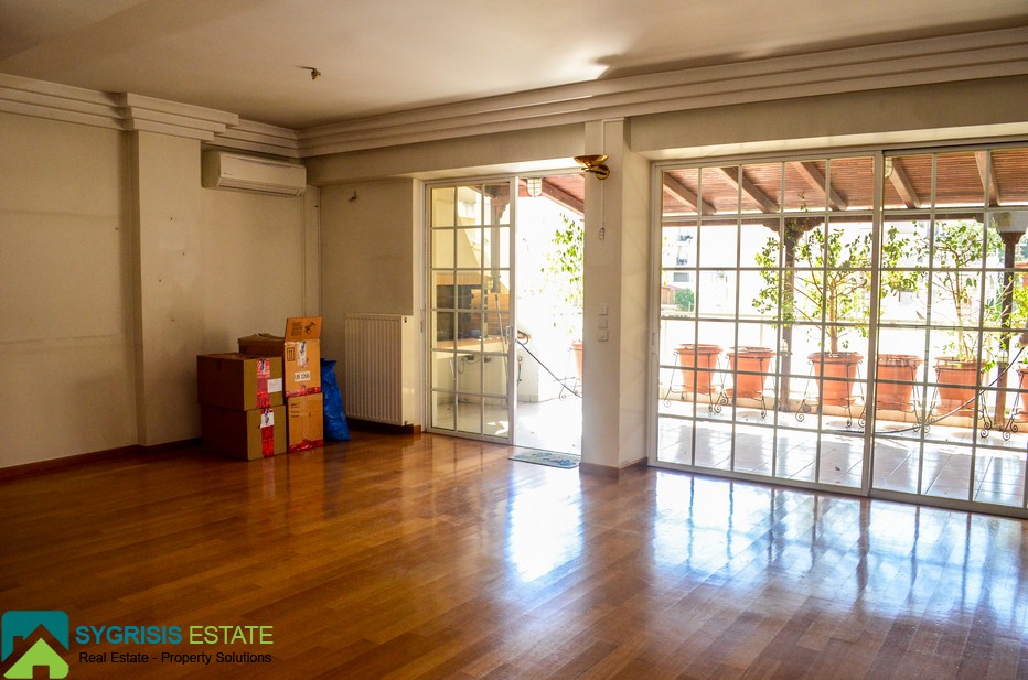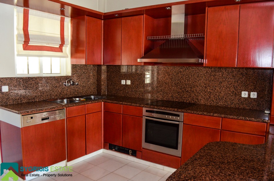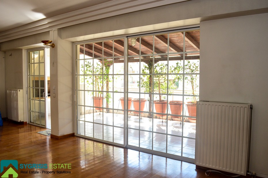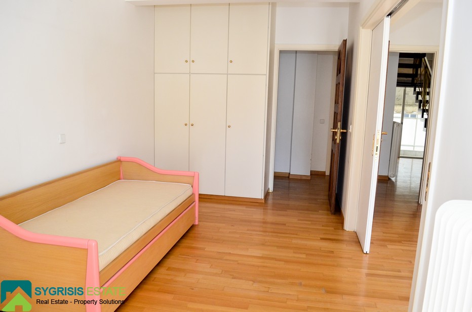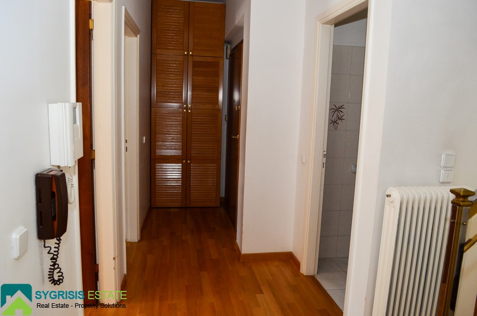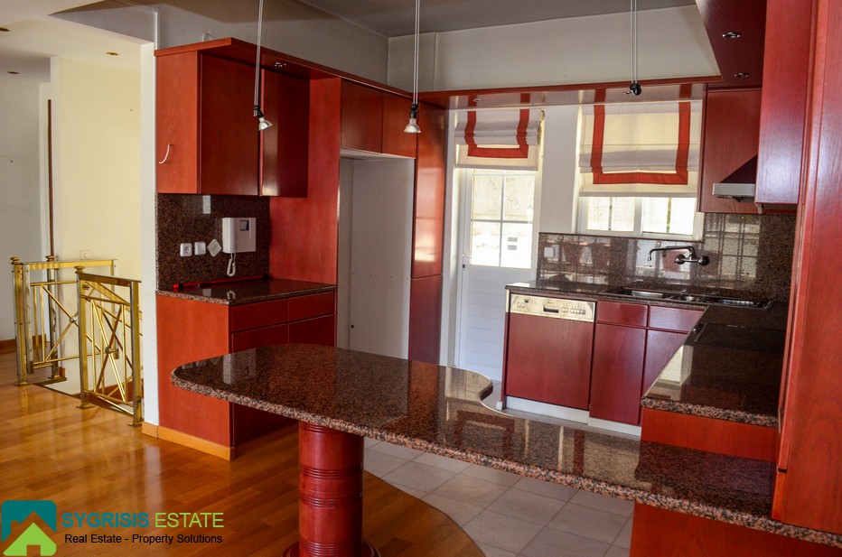For Rent, Luxurious maisonette , 143 sq.m. , 3 rd and 4 th floor, frontage, dual aspect, 1993 construction, complete renovation 2004, 3 bedrooms, open plan living room – kitchen, 2 bathrooms, 1 w / c, fireplace lined marble and wood, stucco ceiling construction with dimmer switches and interior lighting, installation for Home Cinema, fitted kitchen with granite countertops and wood cabinets, electrical extractor fan devices with self-cleaning filter, stove, dishwasher are INOX and Neff brand, whirlpool bath 2 sinks, bath storage, shower cabinet, solar water heater, specially shaped room for dryer and washing machine, BBQ with ventilation motor, balcony 36 m x 9 m Wooden roof of impregnating wood, 3 air condition inverter, awnings, balconies all around, autonomous heating with thermostat, security alarm and intercom in both 2 floors , wooden staircase with brass railing, everywhere wooden floors and wooden interior doors, wardrobes all fitted and wooden, wooden wall shoe storage, aluminum window frames with double glazing, security door, storage room on the balcony, 1 parking space.